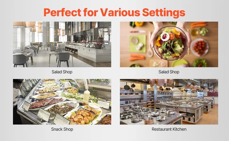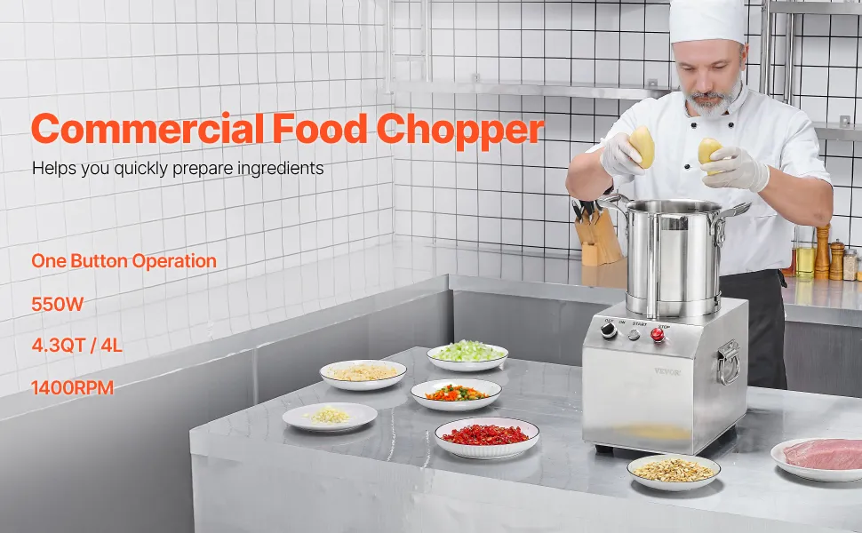 The food processor can be used in restaurants, dessert shops, home kitchens, hotels, and more. It allows you to easily chop a variety of vegetables and fruits.
