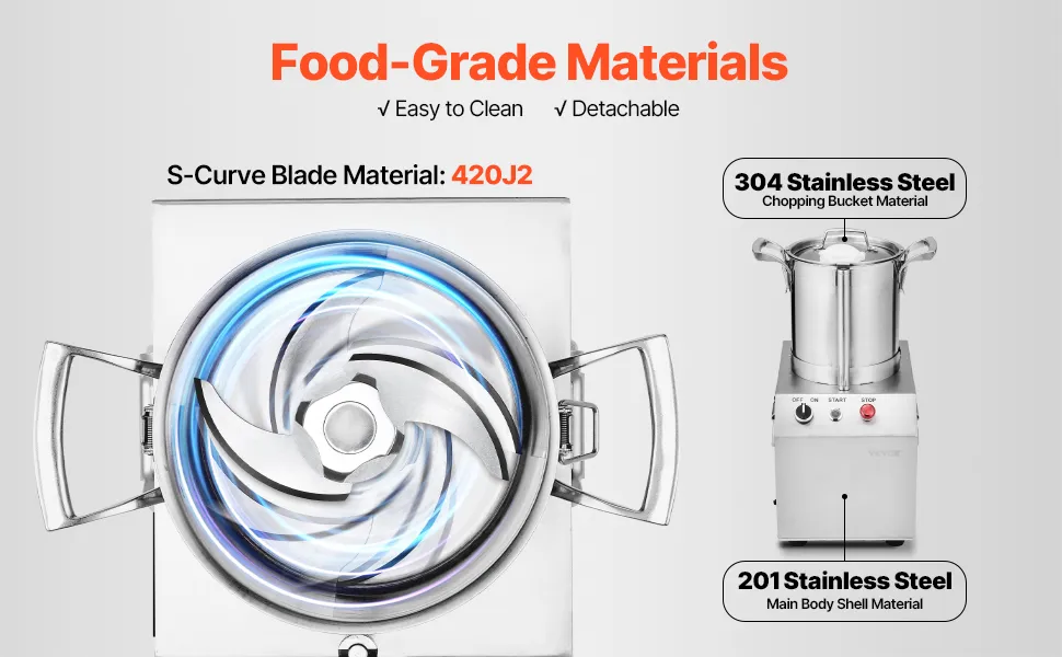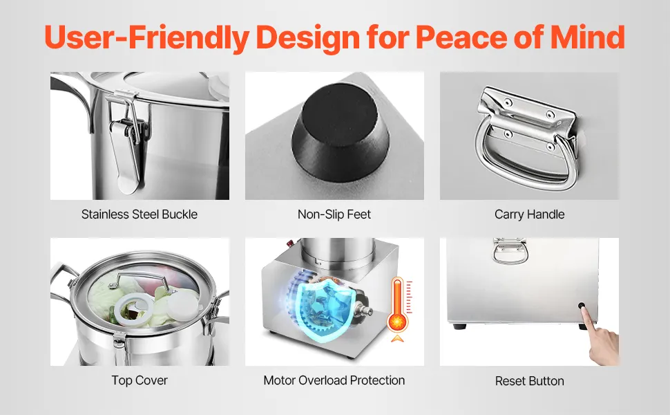 Our food processor is built with an all-stainless steel body featuring easily detachable and washable components for effortless maintenance. You can trust in the quality of materials we use to ensure your food stays secure and delicious.