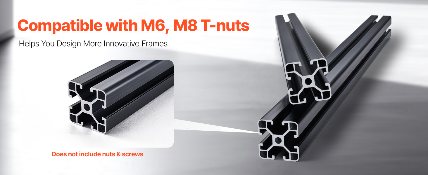 VEVOR 4PCS 39.4 in (1000mm) T Slot 4040 Aluminum Extrusion Profile, European Standard Anodized Linear Rail, High-Strength Extruded Aluminum Rail for 3D Printer, CNC Machine DIY, Laser Engraving, Black