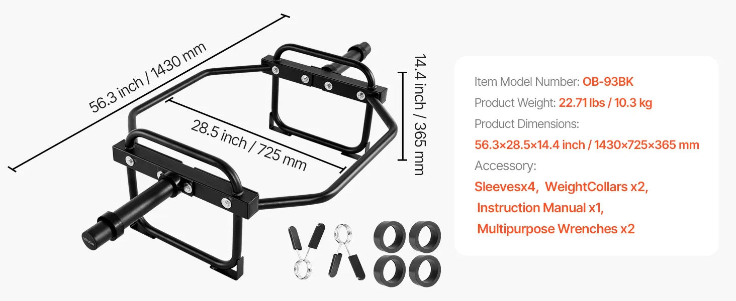 • Humanized Design: The shrug bar is equipped with 4 spacer rings—2 for each side—creating extra space between the weights and your hands for more comfortable training. The connection plates are upgraded to ultra-thick 5mm steel
