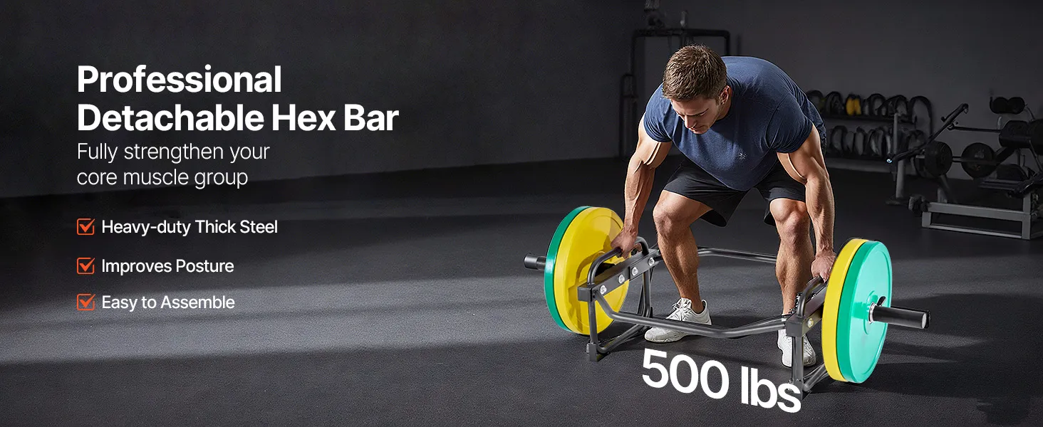 • Heavy-Duty Thick Steel: The hex bar is constructed from heavy-duty steel with seamless welding and supports a maximum load of 500 lbs / 240 kg, ideal for strength training. The matte powder-coated surface is durable and rust-resistant