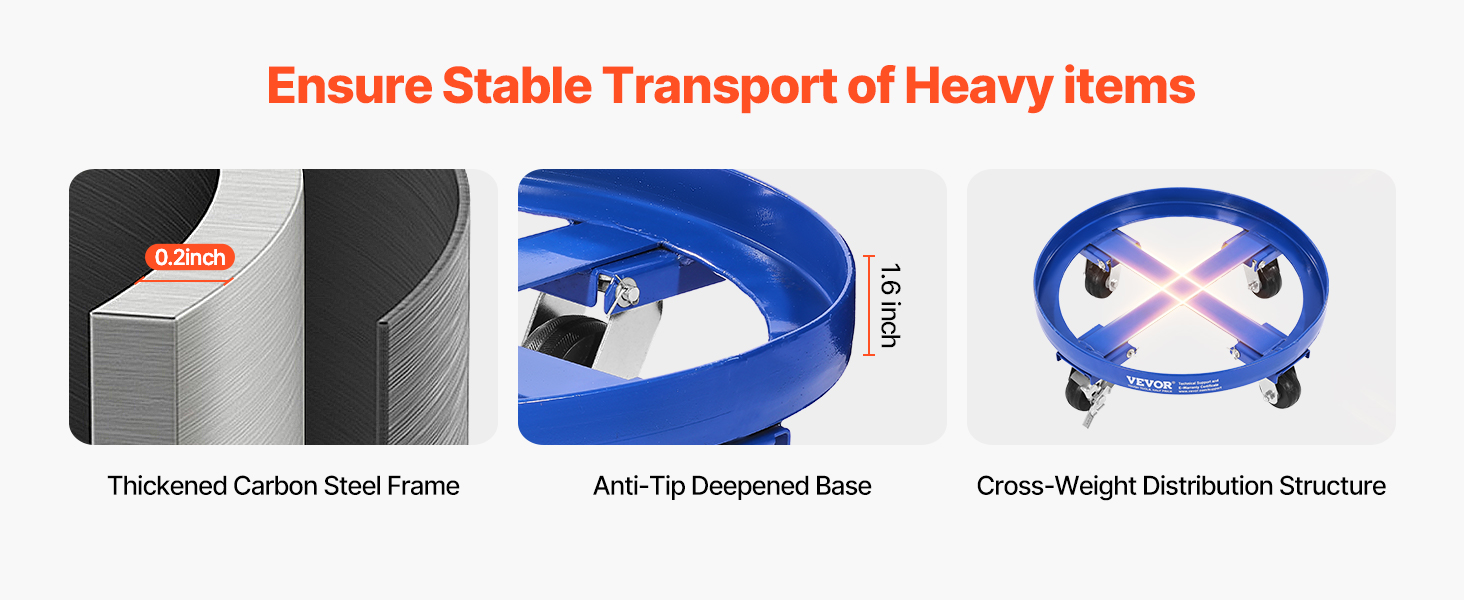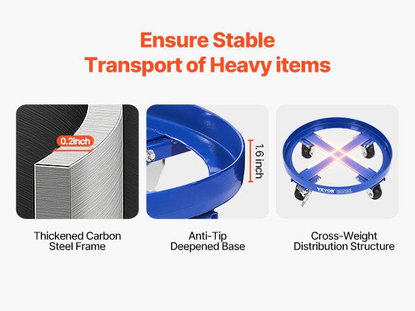 Effortless Drum Transport: Max Load Capacity of 2000 lbs