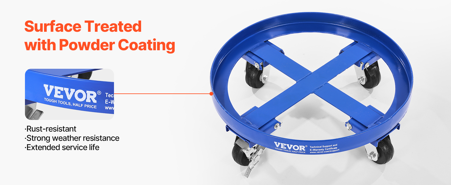 VEVOR 55 Gallon Drum Dolly, 2000 lbs Load Capacity, Heavy-Duty Barrel Dolly with Cross Braces and 4 Swivel Caster Wheels, Non Tipping Hand Truck Capacity Dollies for Warehouse Drum Handling, Blue