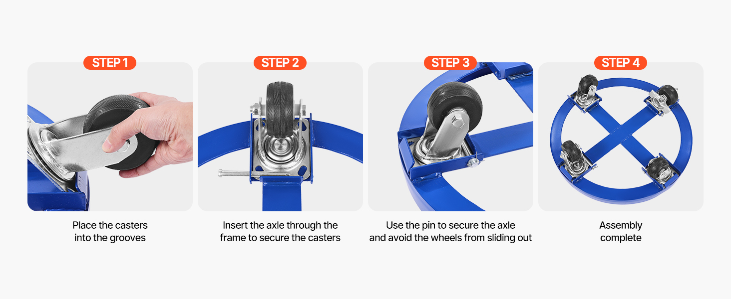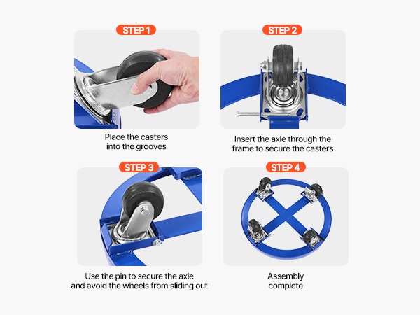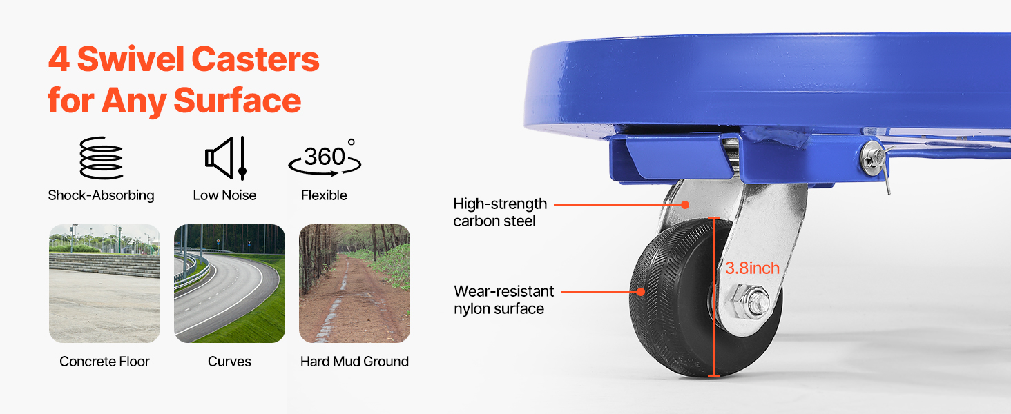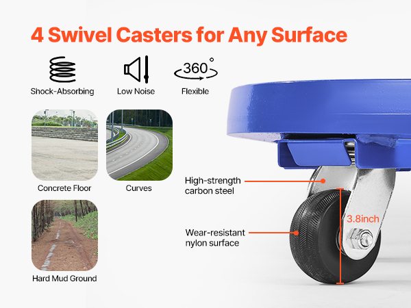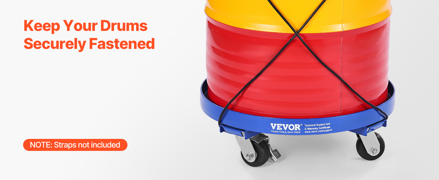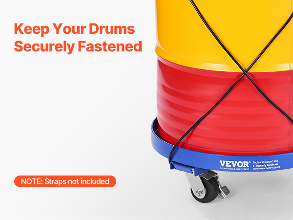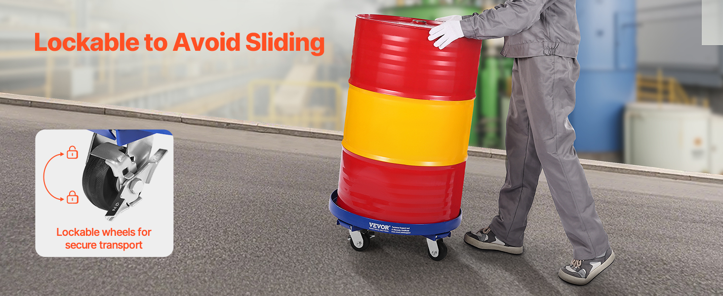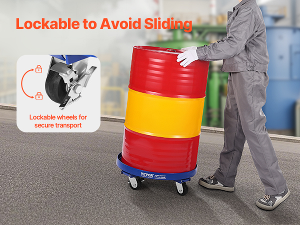 Move heavy barrels with ease! Our heavy duty drum dolly is equipped with 4 smooth, 3.8-inch swivel casters that glide over any surface. Lock the wheels to keep everything secure while stationary.
