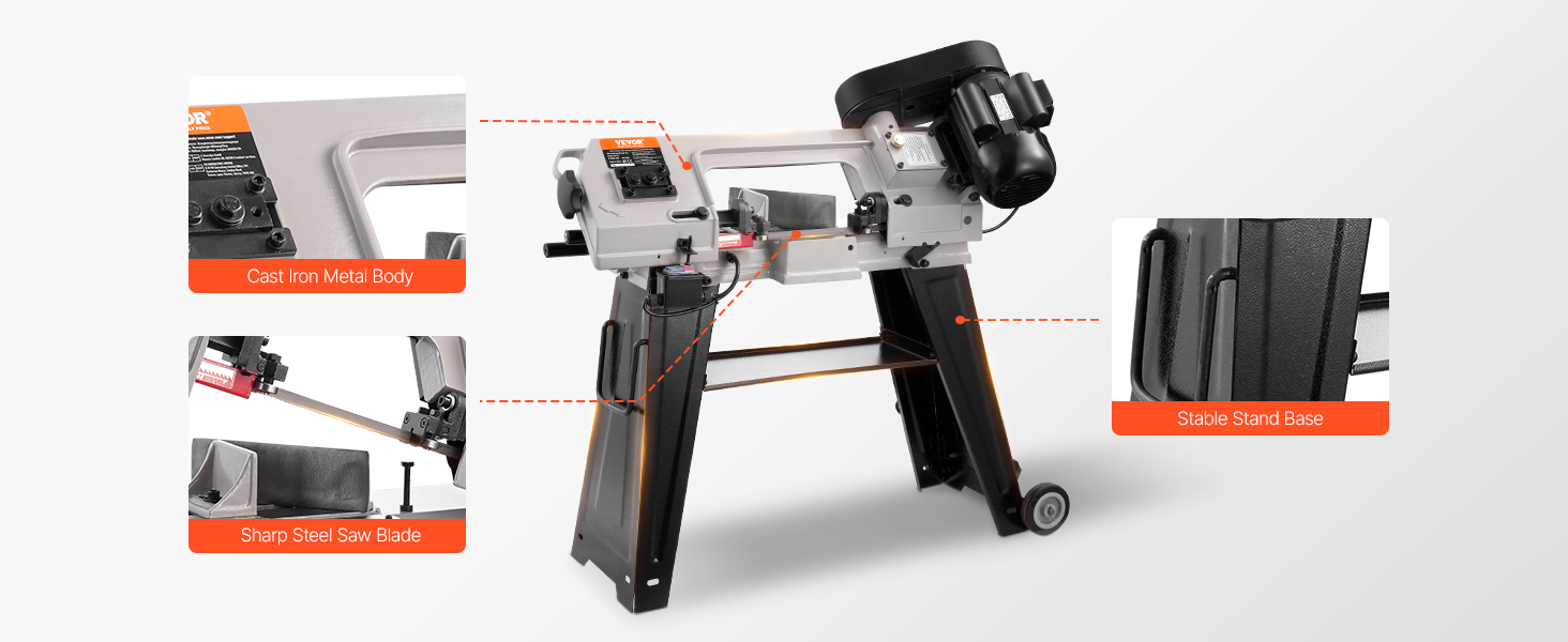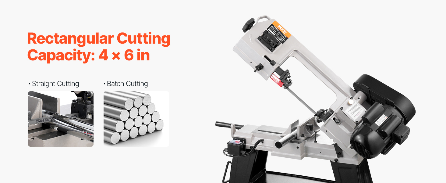 VEVOR Metal Horizontal Band Saw, 102 x 152 mm(4 in x 6 in) Rectangular Cutting Capacity, 220V Metal Vertical Cutting Bandsaw with 550W Motor, 0-45° Angle Adjustment, Variable Speed, for Metal, Wood, and Plastic