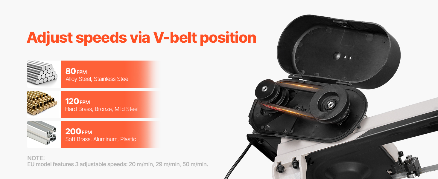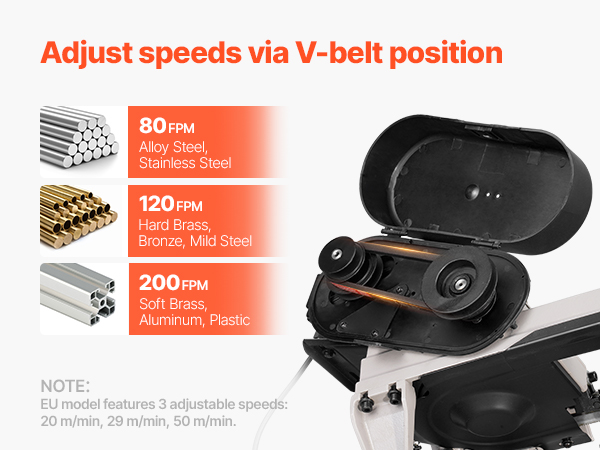 Powered by a 550W high-performance motor with three-speed options, this metal cutting band saw handles alloy steel, stainless steel, aluminum, and more with ease.