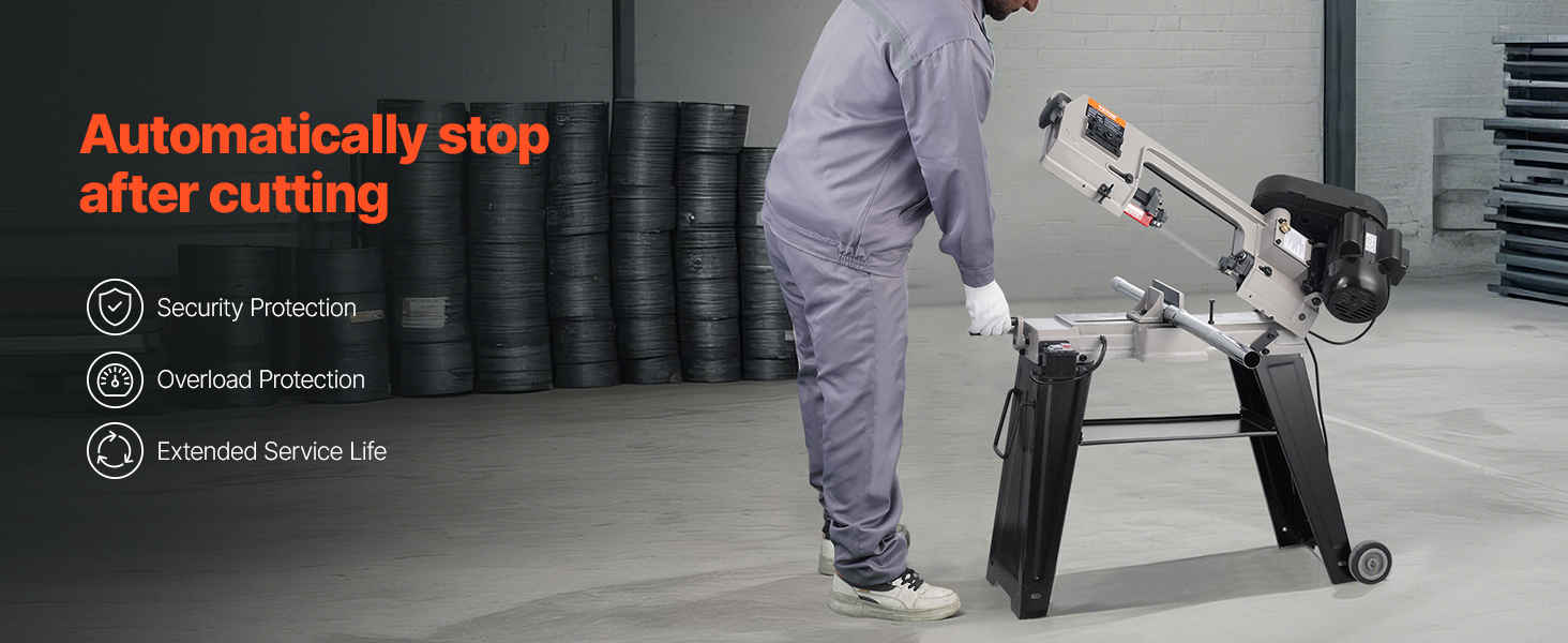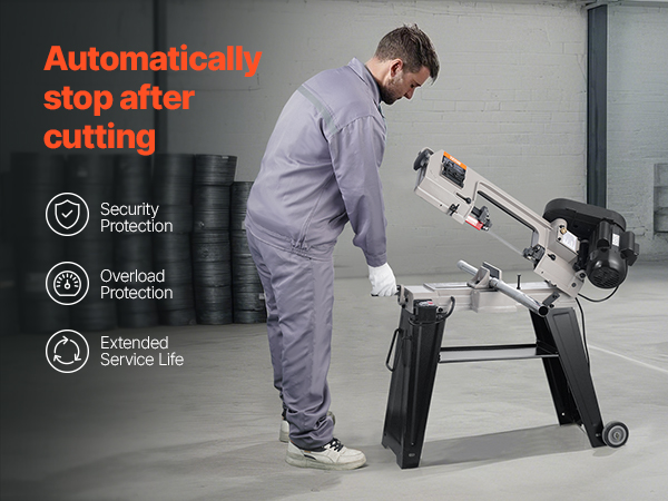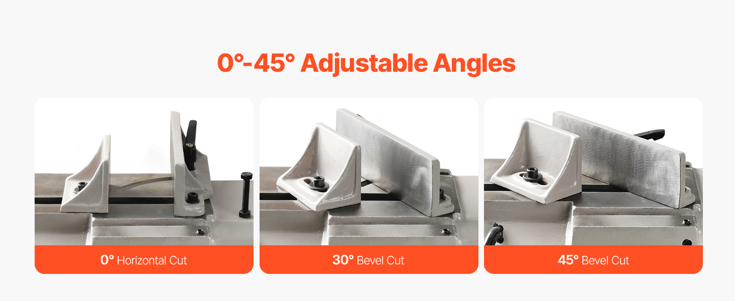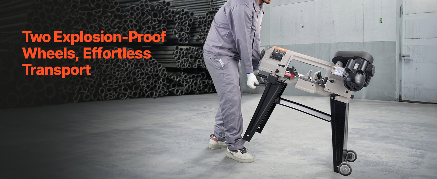 This metal horizontal band saw supports horizontal, vertical, and 0-45° angle cuts. Adjustable speeds ensure effortless metal cutting for any task.