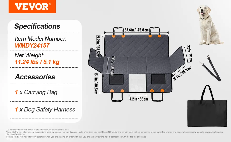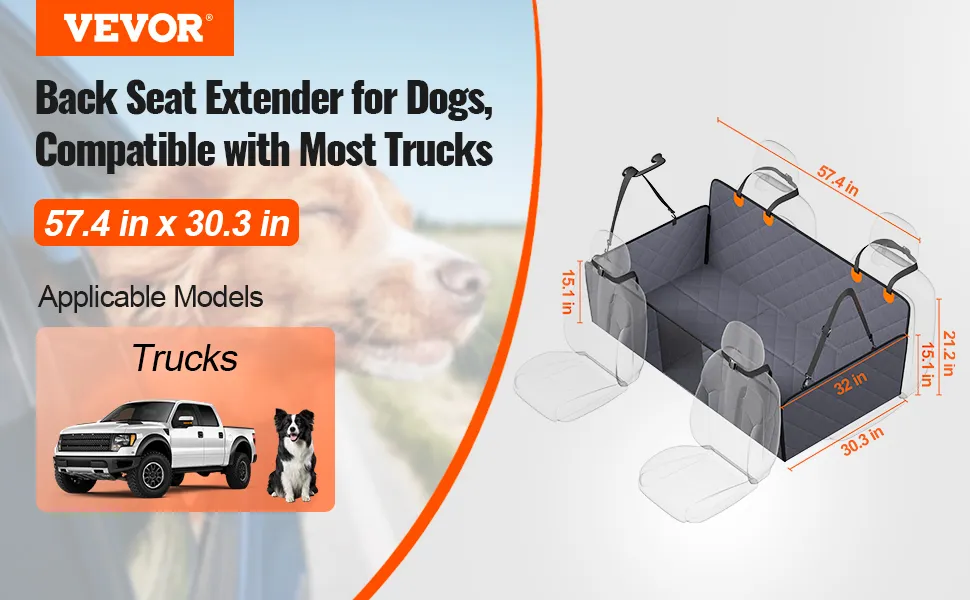 VEVOR dog seat extender available in various sizes to fit sedans, SUVs, and trucks. Compatible with different car brands, allowing you to choose based on your needs.