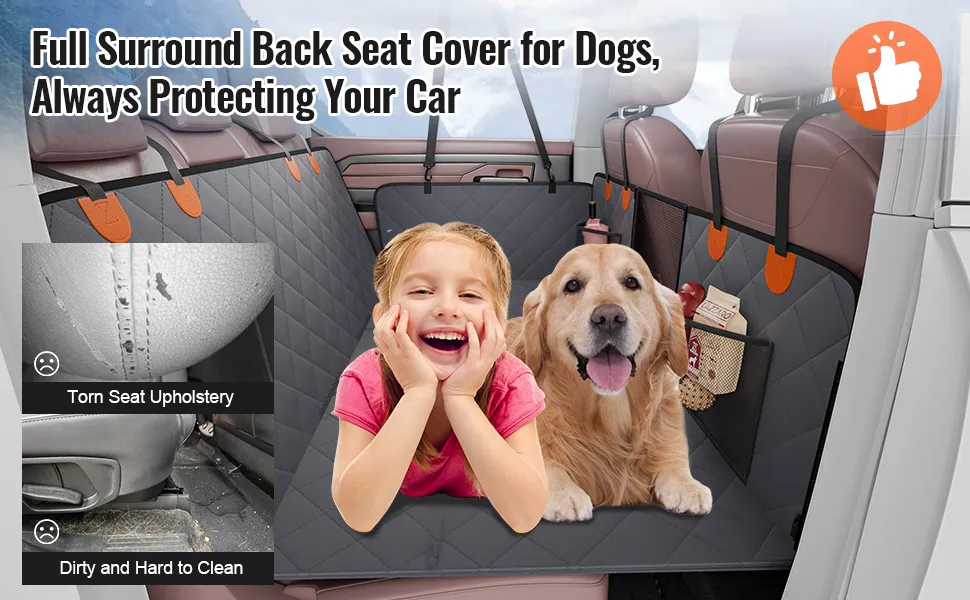 Designed for car back seats, this cover ensures safety and comfort with durable, non-slip materials. Washable, it resists scratches and features breathable mesh, a storage pocket, and a safety belt. Foldable for easy storage and transport.