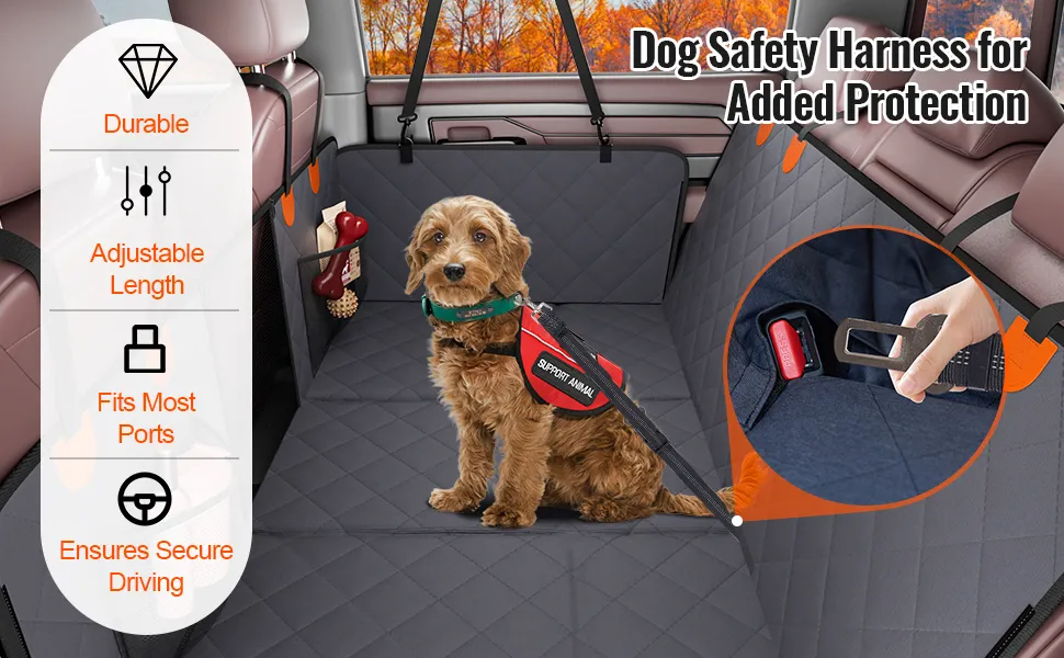 Includes an adjustable safety belt to secure your dog and prevent them from being thrown during sudden stops, ensuring both pet and driver safety.