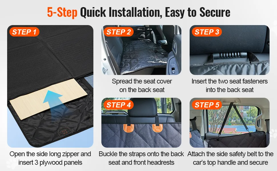 Easy to install with no special tools required, allowing you to set up and start using the dog car seat cover within minutes.