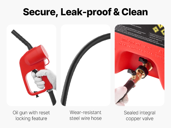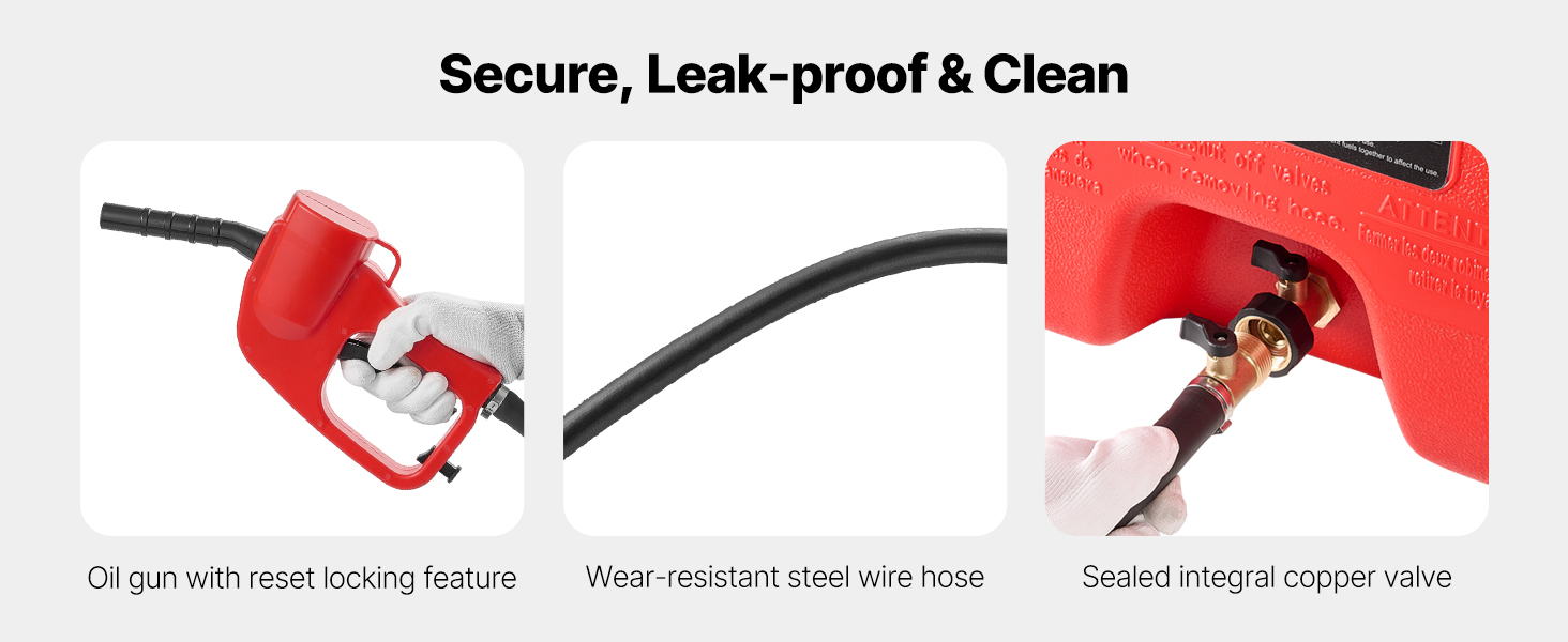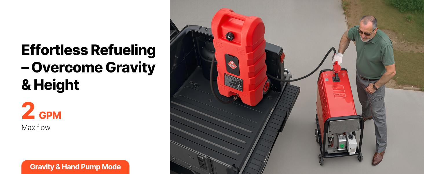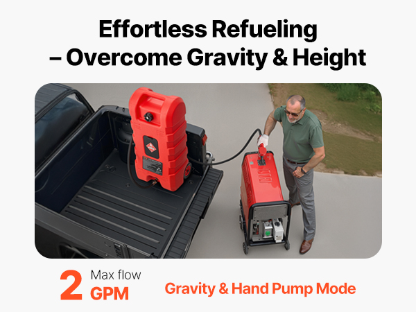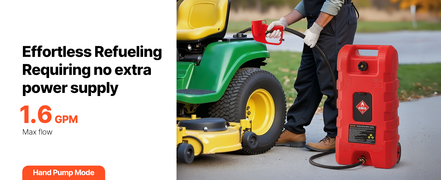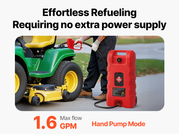 This lightweight hand pump delivers fast, stable fuel flow with gravity-assisted maximum flow rate of 2 GPM. Our gas caddy helps you get the job done more efficiently and quickly.