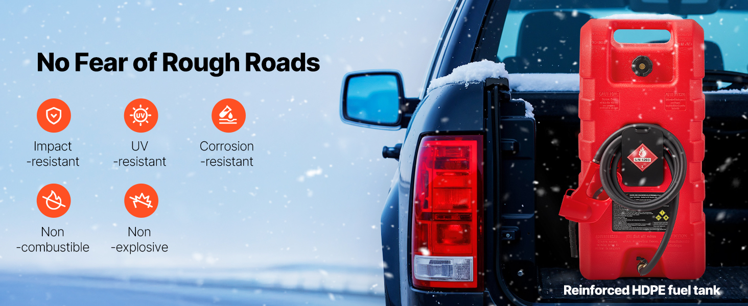 Crafted from tough HDPE material, this portable fuel tank is impact-resistant, corrosion-resistant, and weatherproof. No leaks, no hassles—just reliable, long-lasting performance wherever you need it.