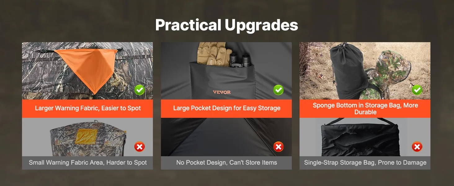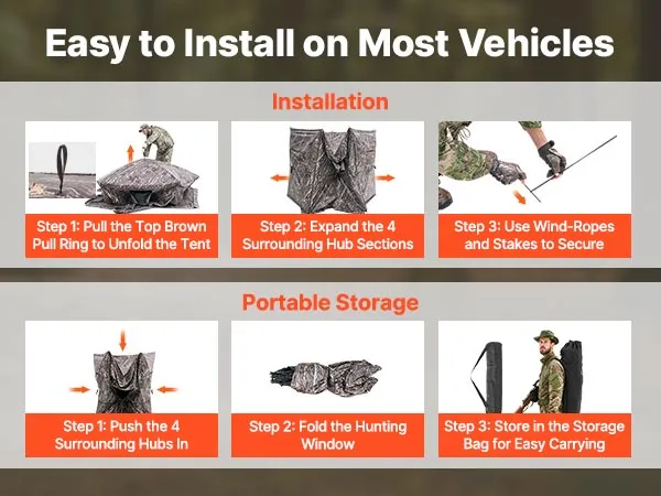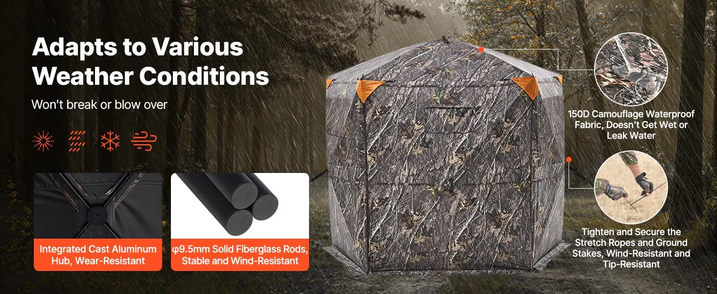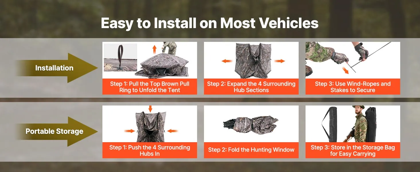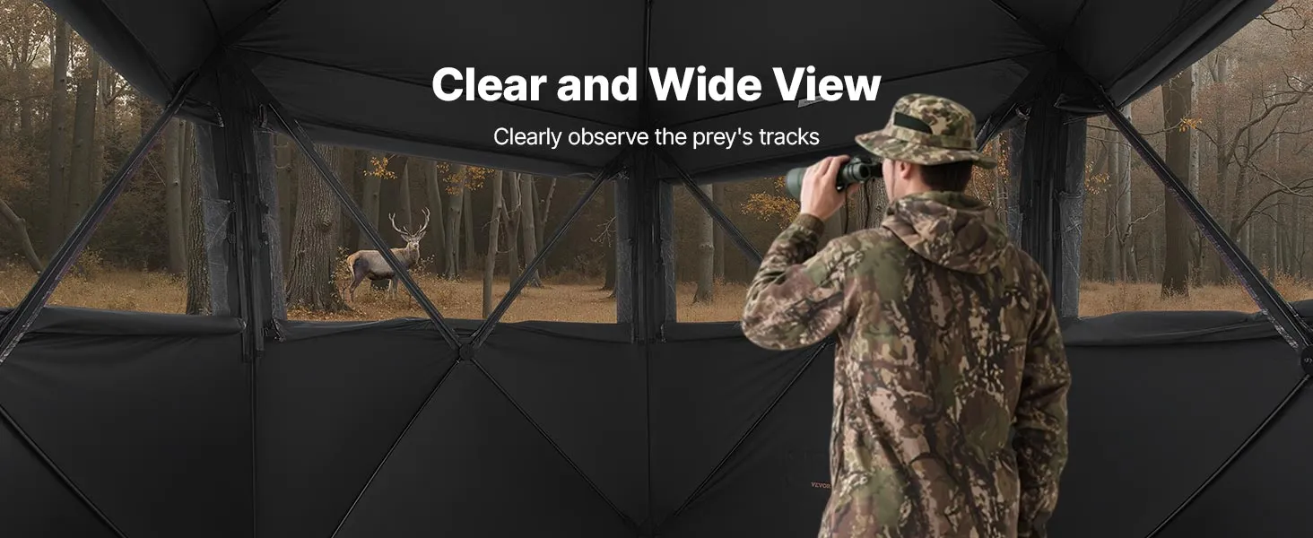 Our hunting blinds feature multi-window, multi-angle viewing designs, providing an unobstructed view, allowing you to easily observe animals and take precise shots.