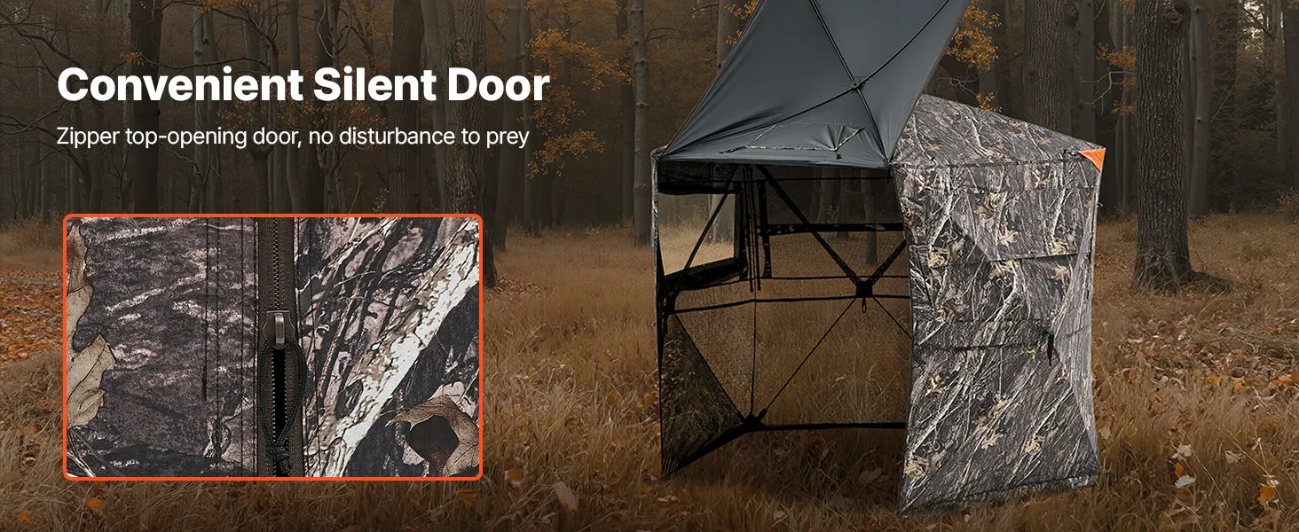 VEVOR Hunting Blind, 6-7 Person, 288 Degree 5 Side See-Through Ground Blinds with Carrying Bag, Portable Camouflage Tent, Durable Concealed Shelter with Silent Zipper Door and Window, for Turkey Deer