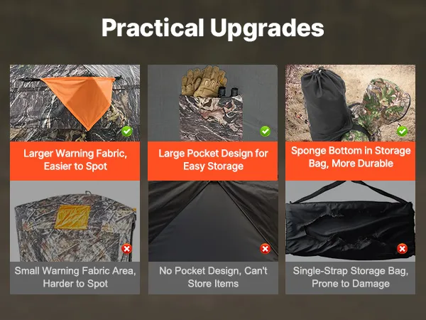 Our hunting blinds feature multi-window, multi-angle viewing designs, providing an unobstructed view, allowing you to easily observe animals and take precise shots.