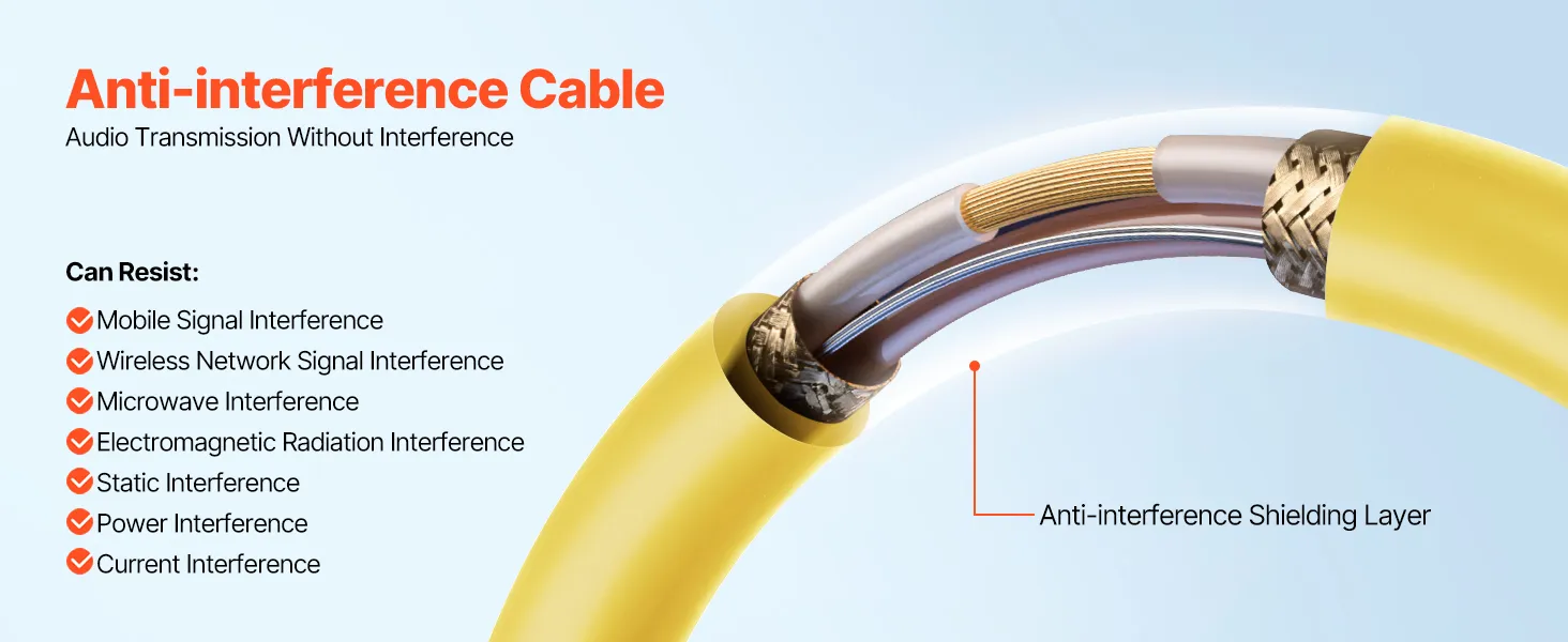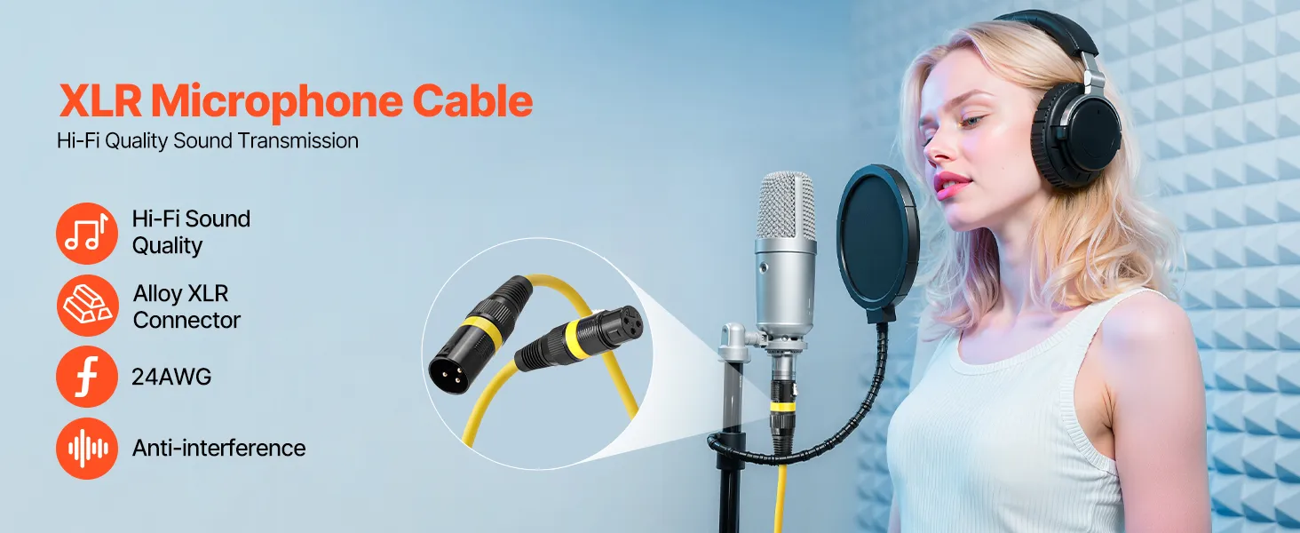 The XLR microphone cables are designed with an anti-interference layer, which can effectively shield unnecessary interference. It ensures pure and stable audio signals when transmitted from speakers to podcast mixers or any other audio equipment.
