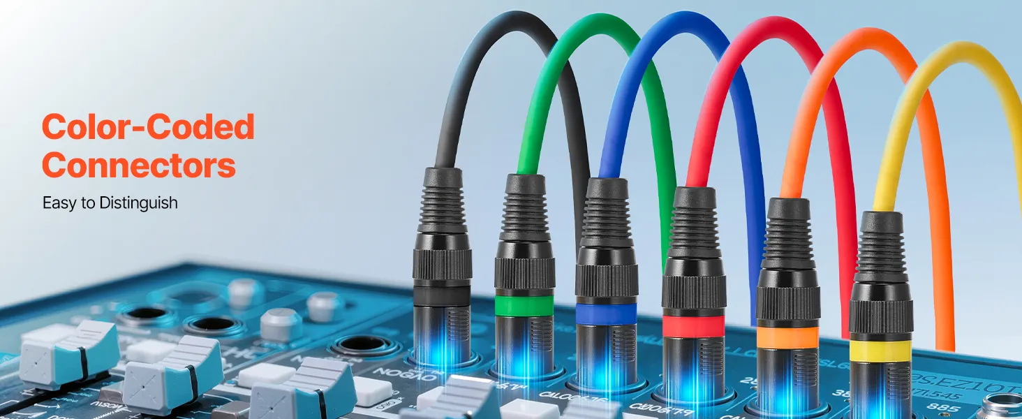 Both connectors of the mic cables are coded with the same color, making it easy to quickly distinguish the connections when using multiple cables, reducing confusion.