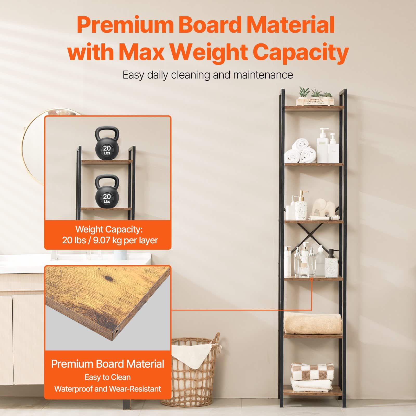 This industrial bookcase isn’t just for books! Use it as a bathroom organizer, plant stand, or however you see fit. It fits seamlessly in living rooms, bedrooms, kitchens, and more.