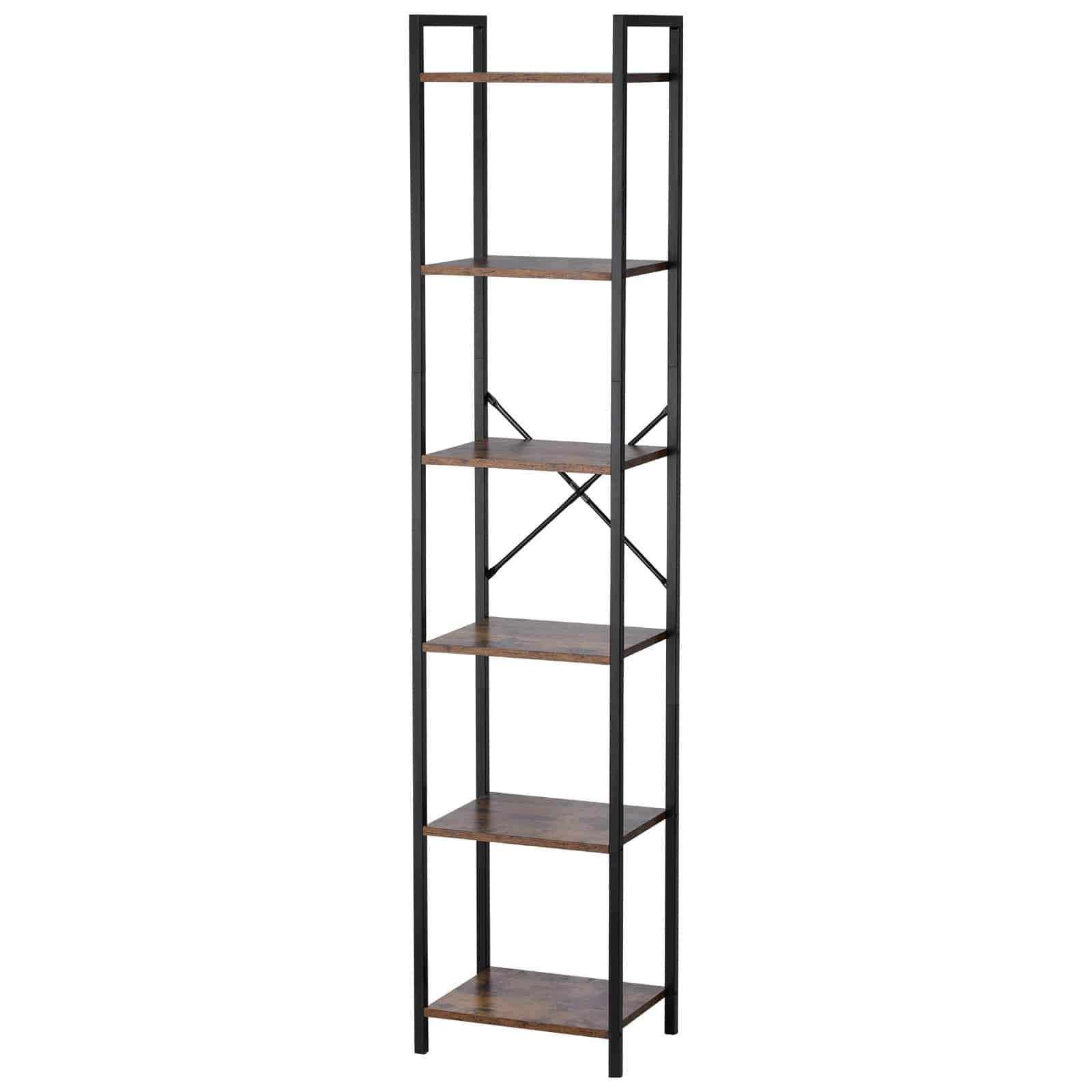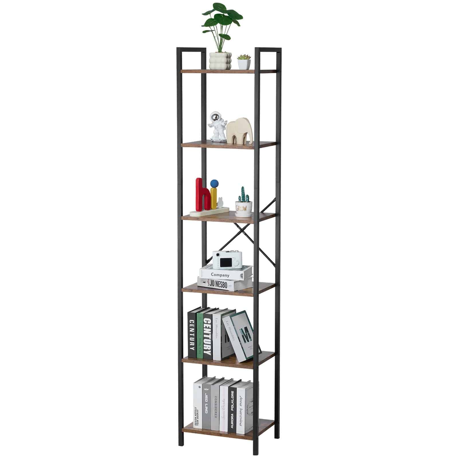 VEVOR Metal Bookshelf, 6-Tier Industrial Bookcase, Tall Narrow Rustic Vintage Storage Bookshelf with Open Shelves, Freestanding Display Shelving Unit Storage Rack, for Living room, Bedroom & Office