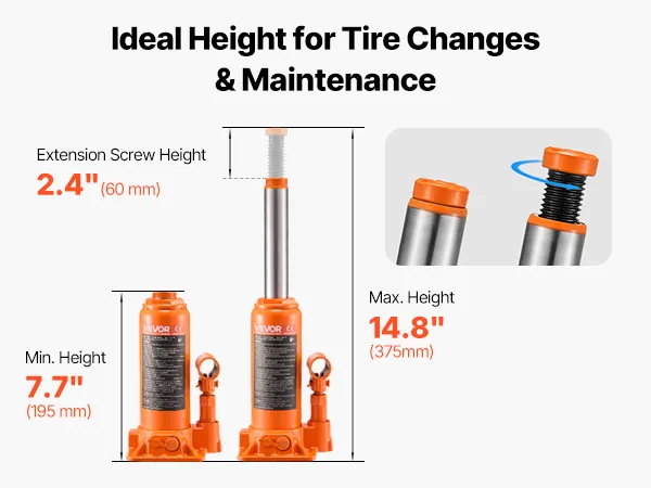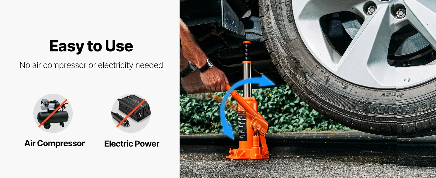 This hydraulic bottle jack uses manual pumping to lift up to 6 tons (13,227.6 lbs) with steady force—no electricity or air needed. It's a solid pick for heavy-duty jobs around the home, garage, or driveway.