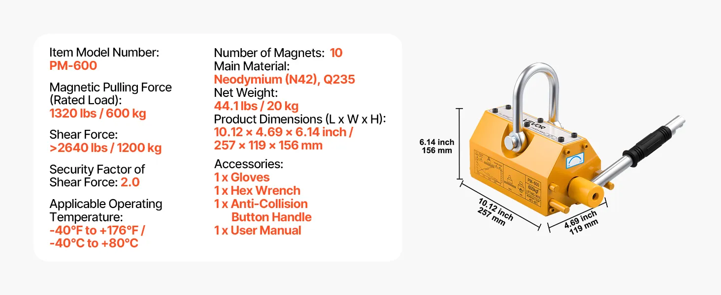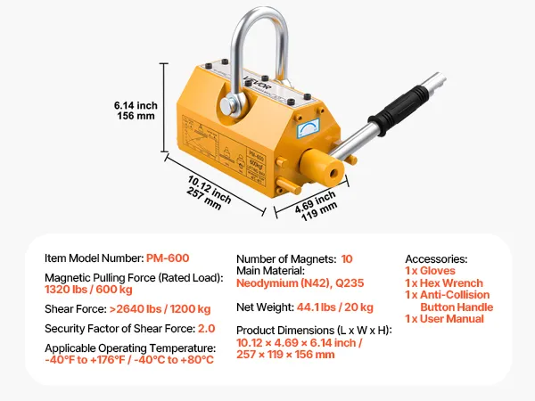 This magnetic lifter is built with a powerful N42 neodymium magnet, allowing you to lift steel materials on-site without any power supply. Get ready to elevate your steel handling efficiency with our lifting magnet!