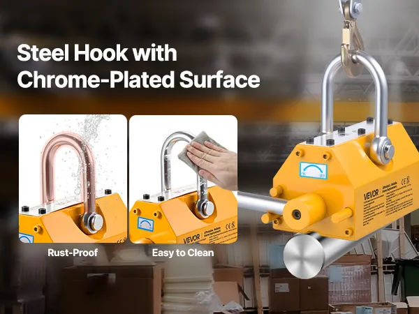 VEVOR Permanent Magnetic Lifter, 600 kg Pulling Capacity, Heavy Duty N42 Neodymium Lifting Magnet with Release Handle and Steel Hook, Used in Shop Crane and Hoist, for Lifting Plate Steel, Board