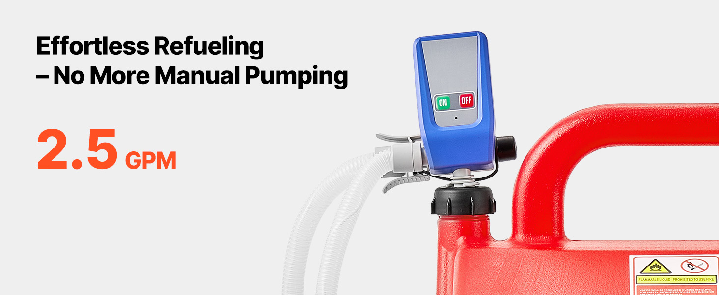 Get the job done faster with the high-power electric pump! Delivering fuel at an impressive 2.5 GPM flow rate, our gas caddy ensures smooth, quick refueling every time.