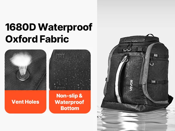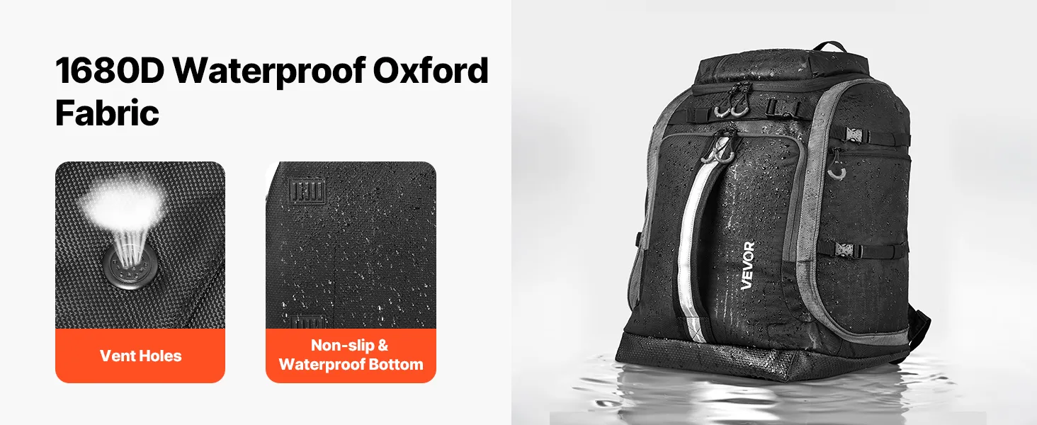 Made of high-strength 1680D waterproof Oxford fabric with a waterproof lining and bottom, this snowboard boot bag effectively blocks snow and rain to keep your gear dry, protected from dampness and corrosion. Ventilation holes at the bottom ensure airflow and avoid odors.