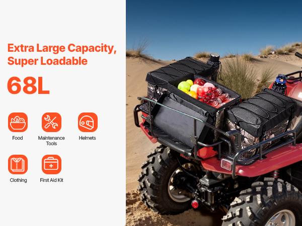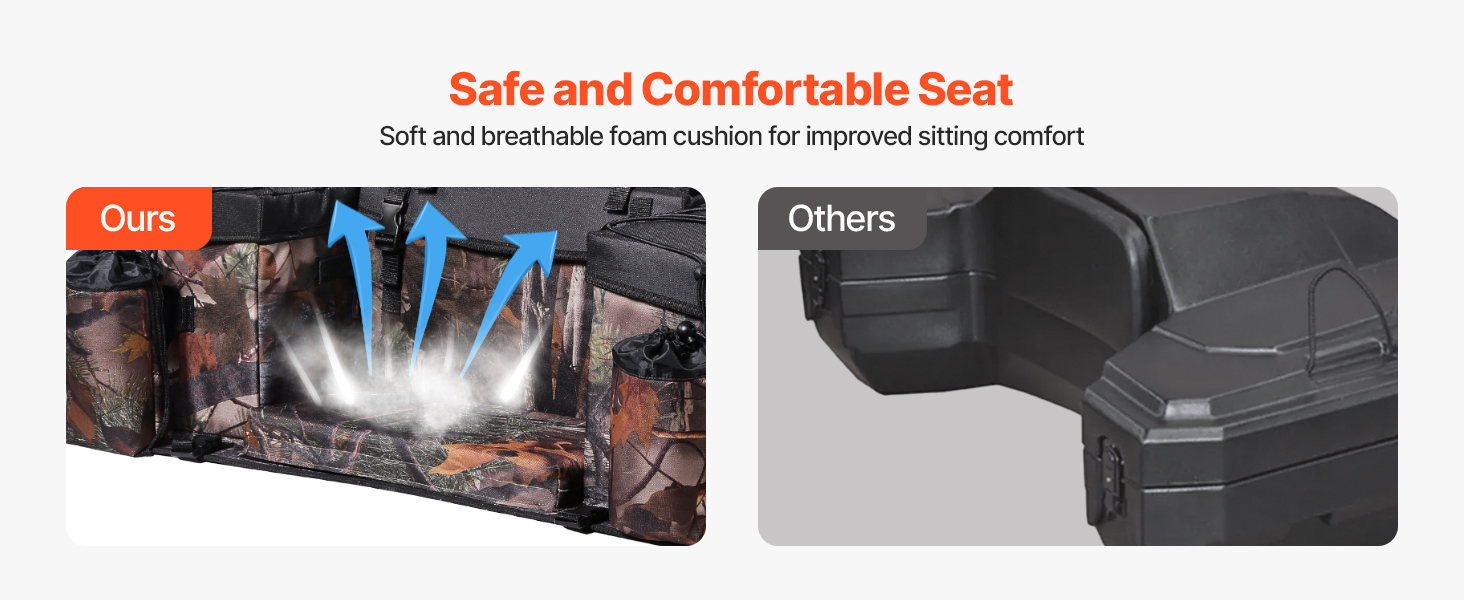 • 68L Large Capacity: The VEVOR 68L high-capacity ATV rear storage bag combines storage and seating in one, offering ample space to store helmets, gloves, maintenance tools, and other essentials. The sponge seat cushion ensures superior comfort during long rides, making it perfect for outdoor adventures.