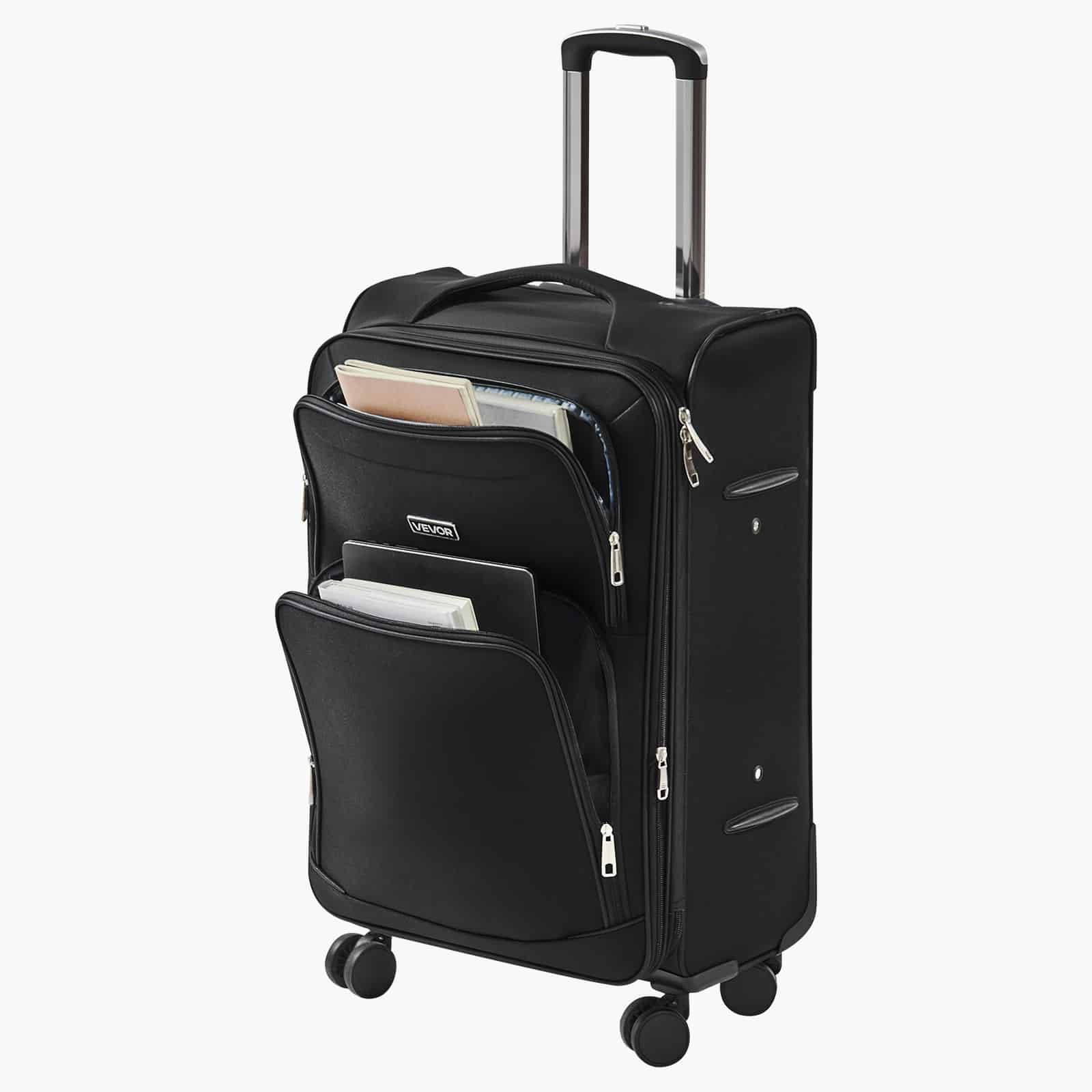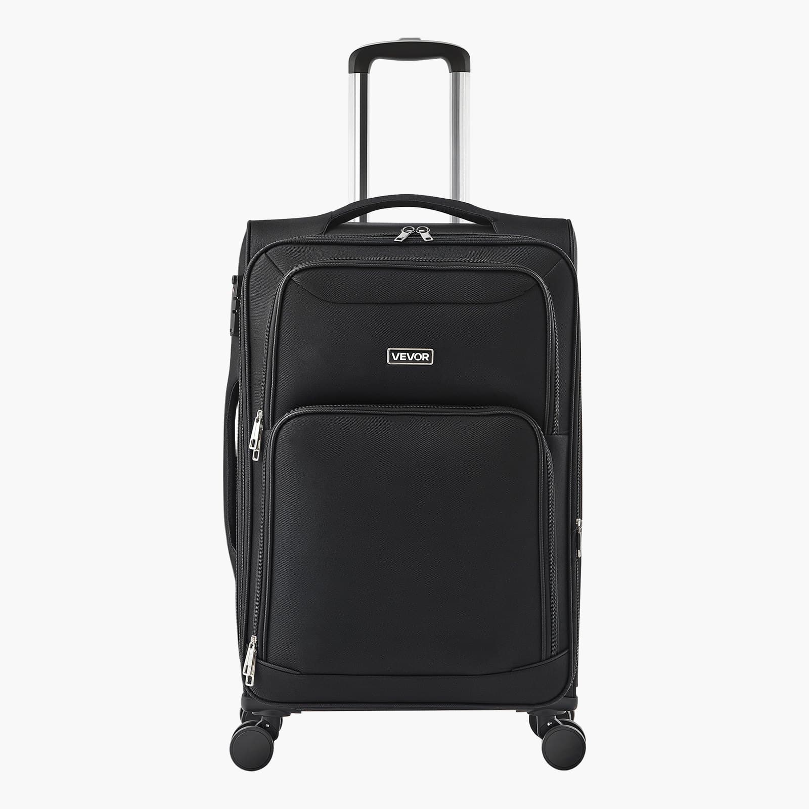 VEVOR Softside Expandable Luggage with Spinner Wheels, 24 inch / 61 cm Softside Checked Medium Luggage, Lightweight Checked Suitcase with Expandable Zippered Pocket and TSA Lock, Black