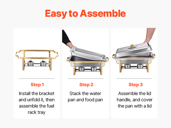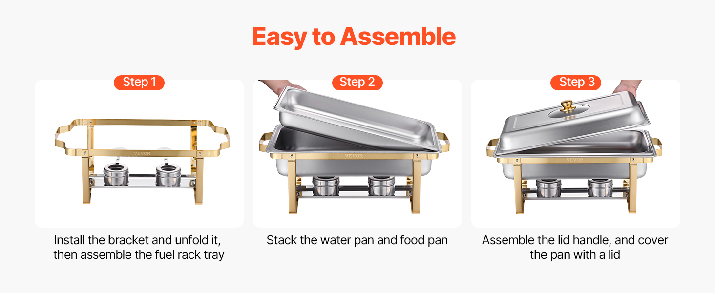 A2: Yes, the chafing dish is made from durable stainless steel, which makes cleaning a breeze. The food pan and water pan are both removable for easy washing, and the frame can be wiped clean after each use.