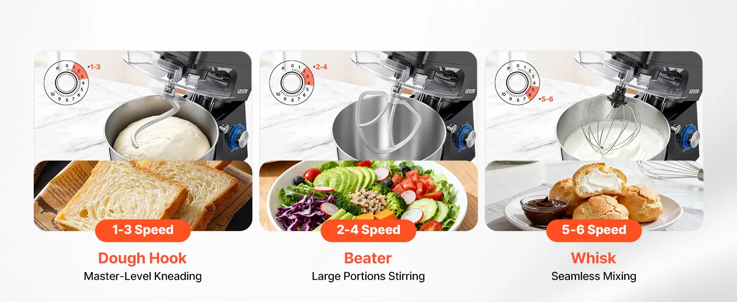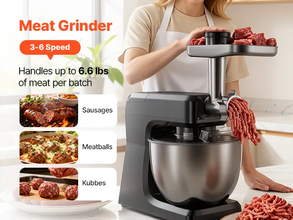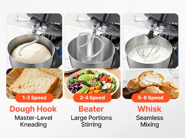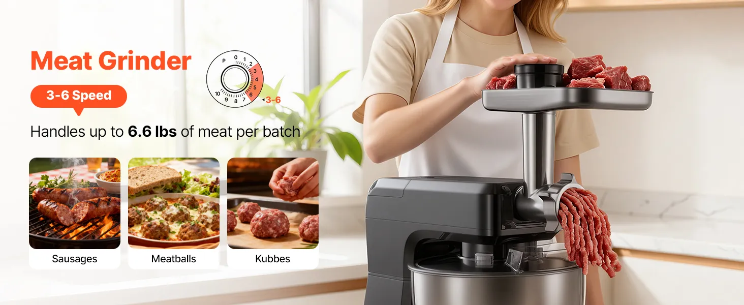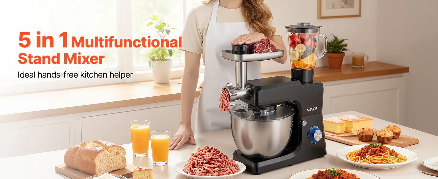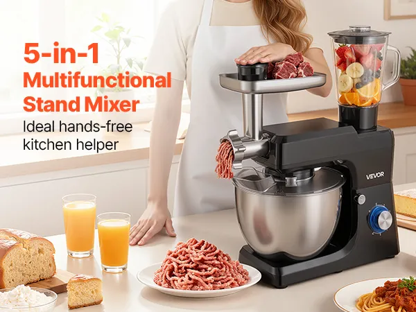 Take the hassle out of meal prep with our stand mixer. With a spacious mixing bowl, it lets you handle big batches effortlessly. Multiple speed control and abundant attachments make it ideal for all ingredients. Built with robust metal and stainless steel for long-lasting durability.