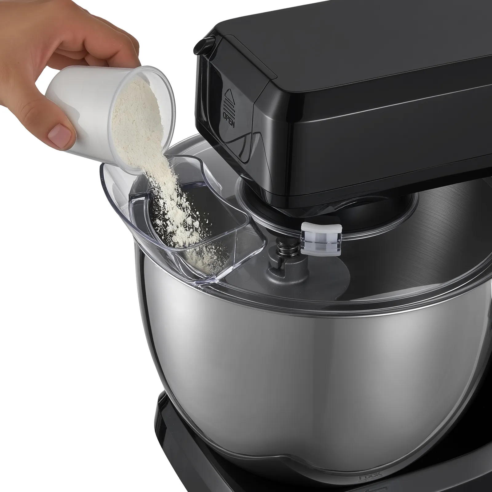 Avoids splashing while mixing or adding ingredients.