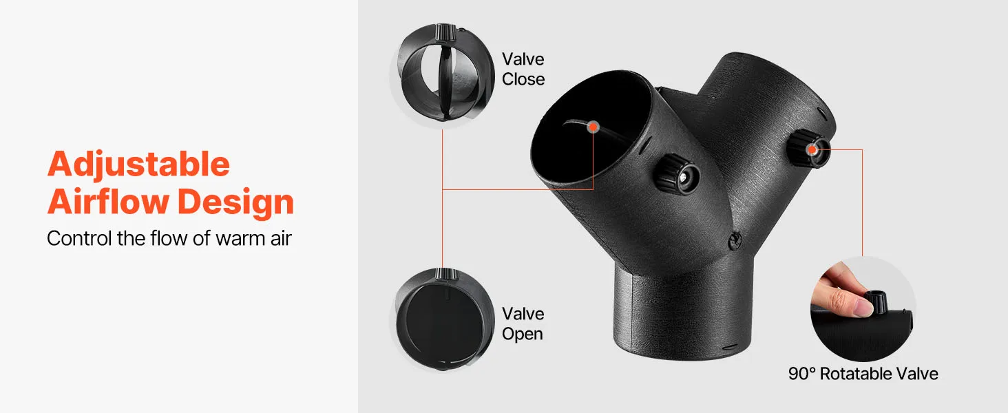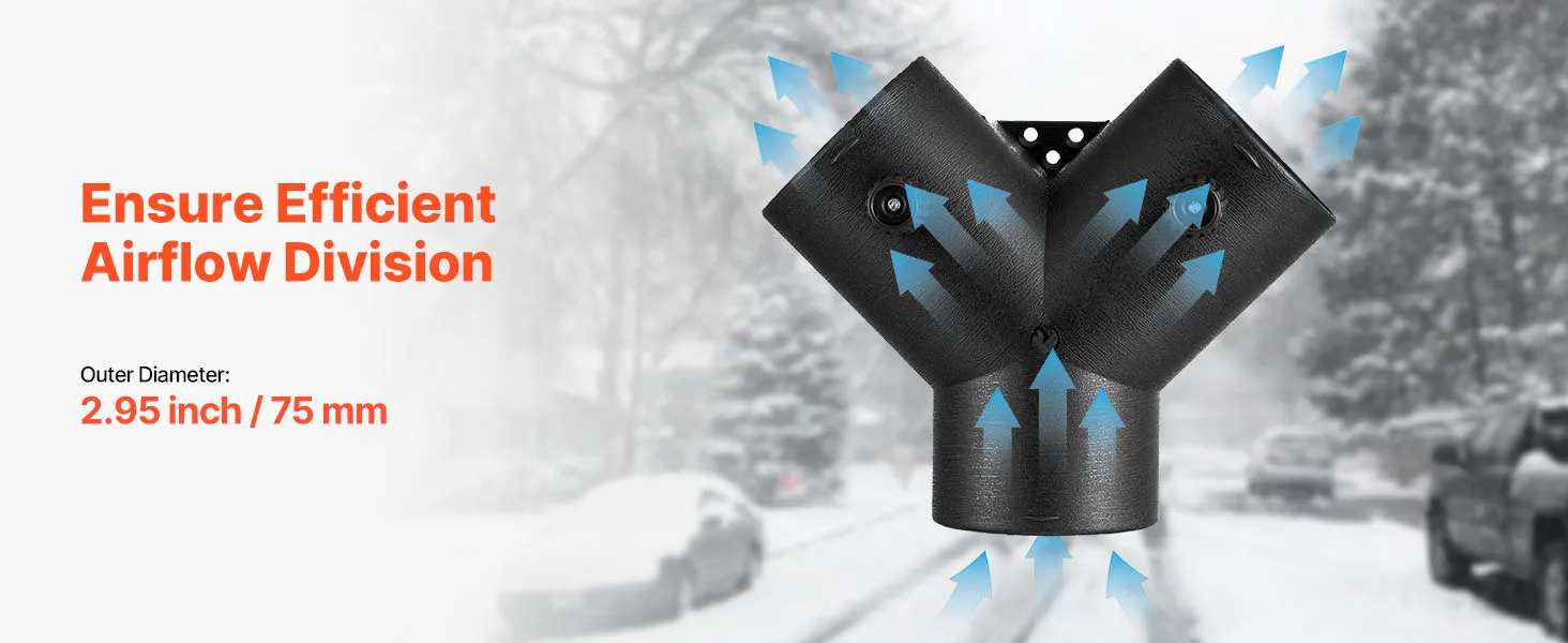 • Easy Setup Design: The y branch outlet exhaust connector offers a convenient setup with its Y-shape design, making it easy to connect with the heater and ductwork. It helps achieve efficient warm air delivery with a simple installation process