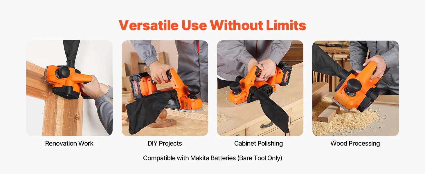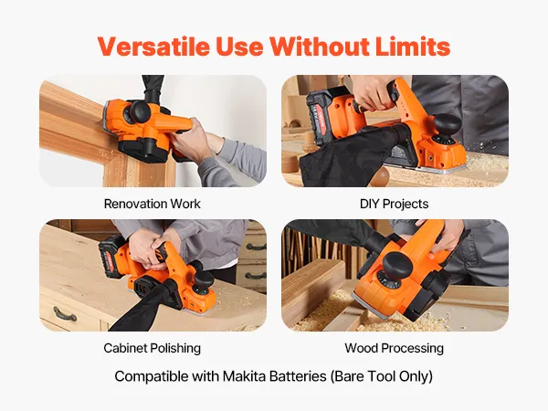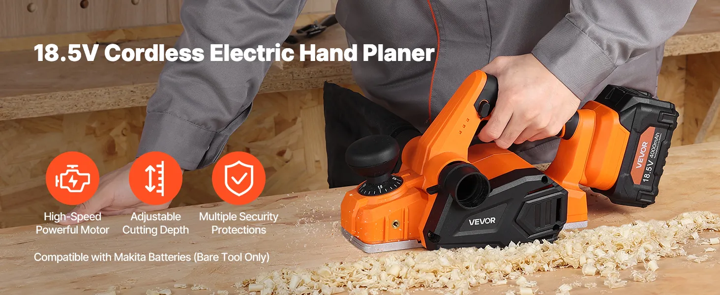 Powered by a high-speed motor with built-in protection, this cordless handheld planer handles various wood processing tasks with ease, saving both time and effort.