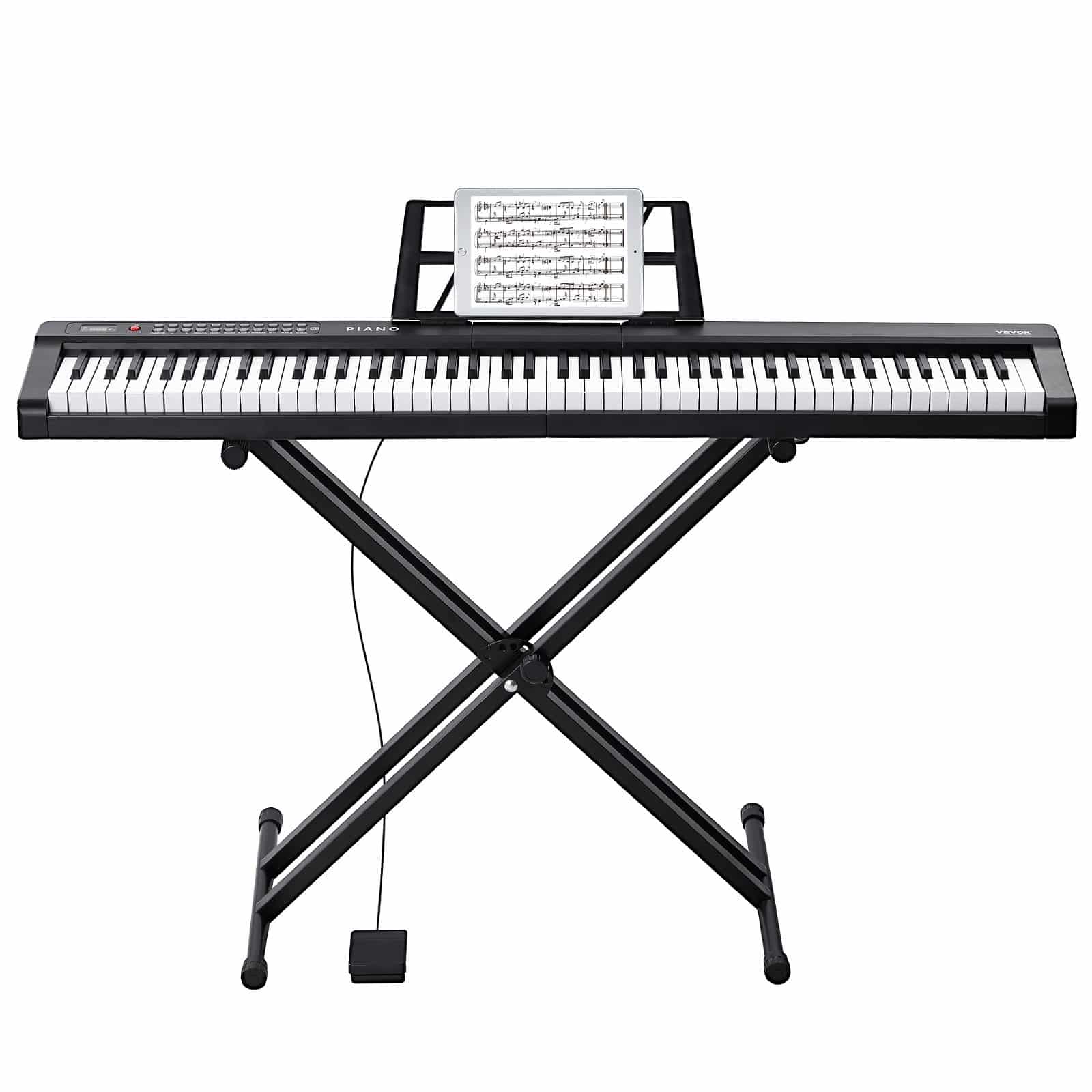 VEVOR 88 Key Digital Piano Keyboard, Semi Weighted Keys, Full Size Electric Keyboard Piano Set with Adjustable Stand Built-In Speakers Sustain Pedal Headphones, Bluetooth MIDI USB for Beginners