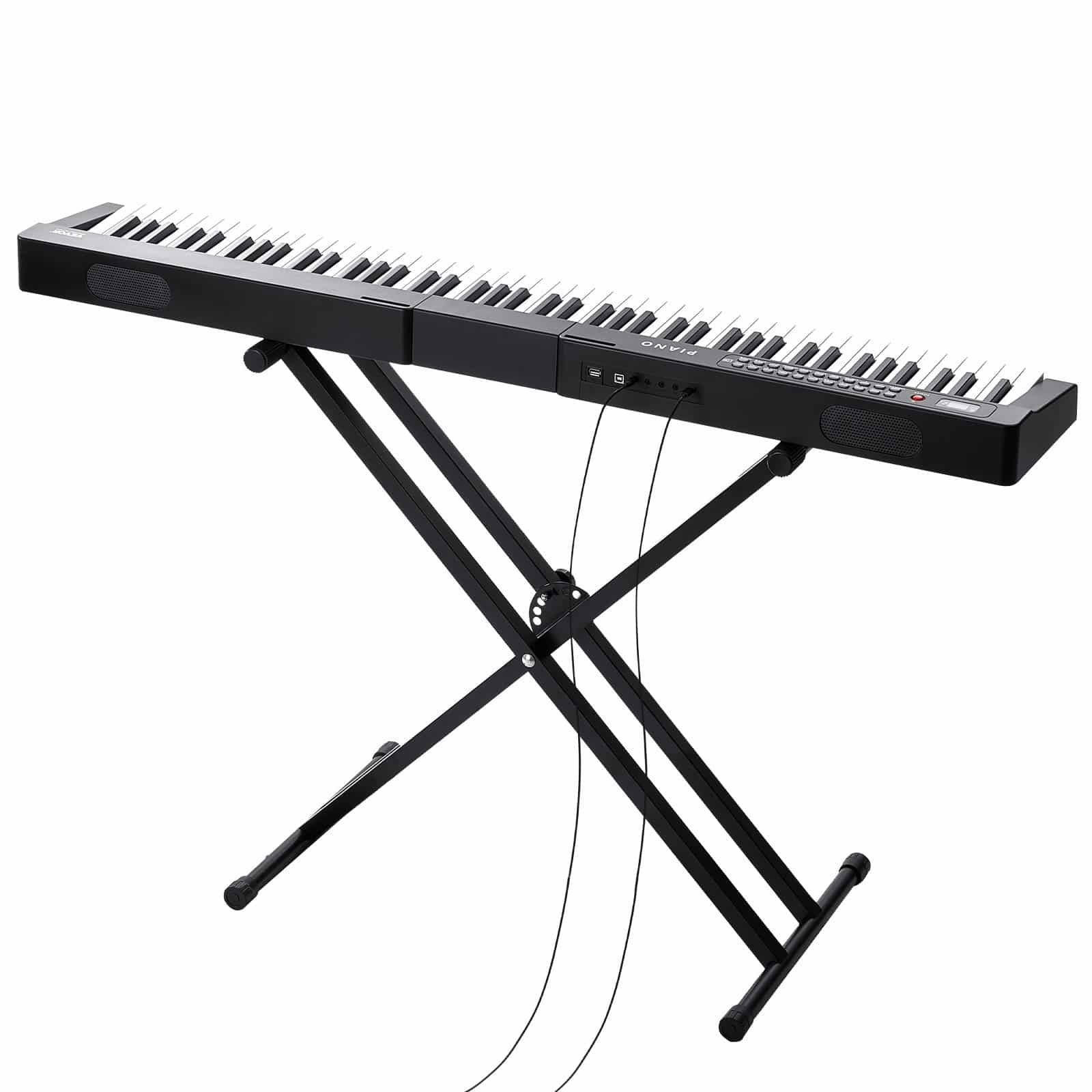 Elevate your music practice with our semi-weighted keyboard piano, delivering an authentic piano feel ideal for beginners. Enjoy a rich auditory experience with 1000 tones, 1000 rhythms, 150 demo songs, and built-in dual speakers. The double-X stand adjusts from 11.8 to 38 in for your convenience!