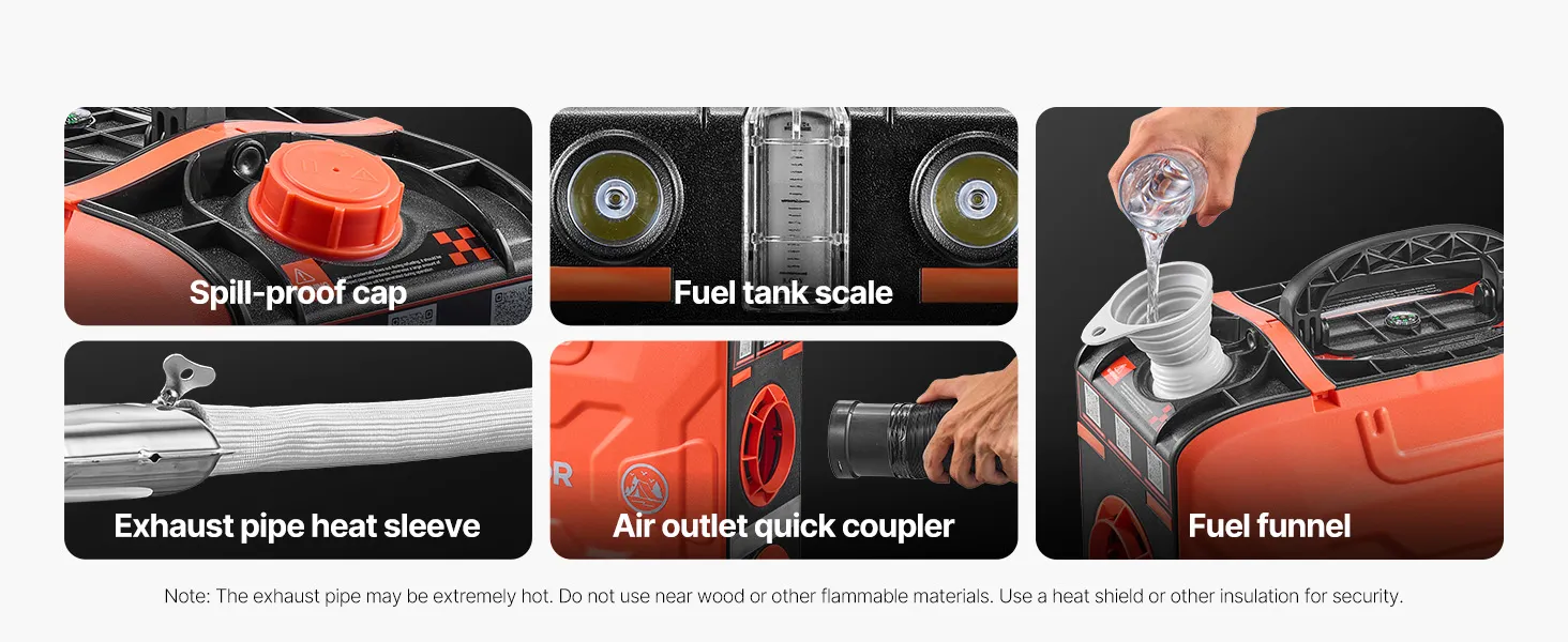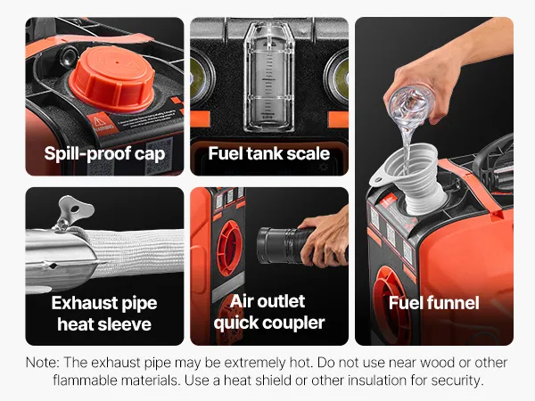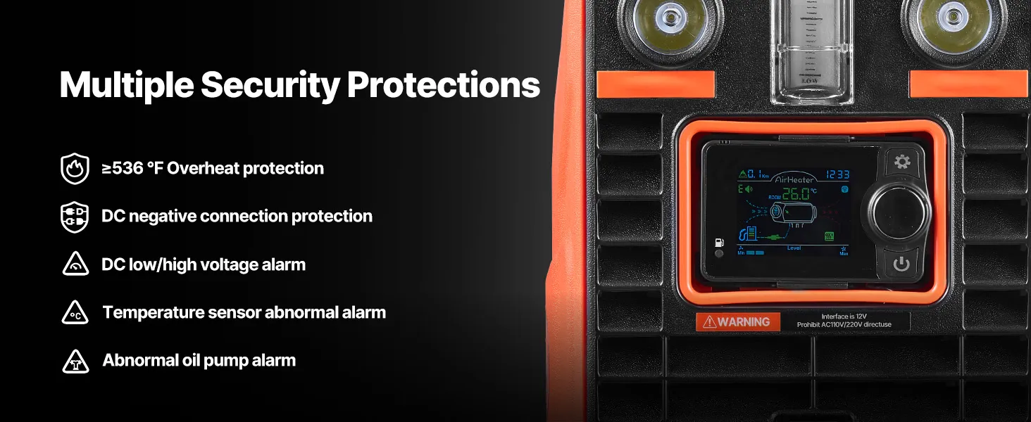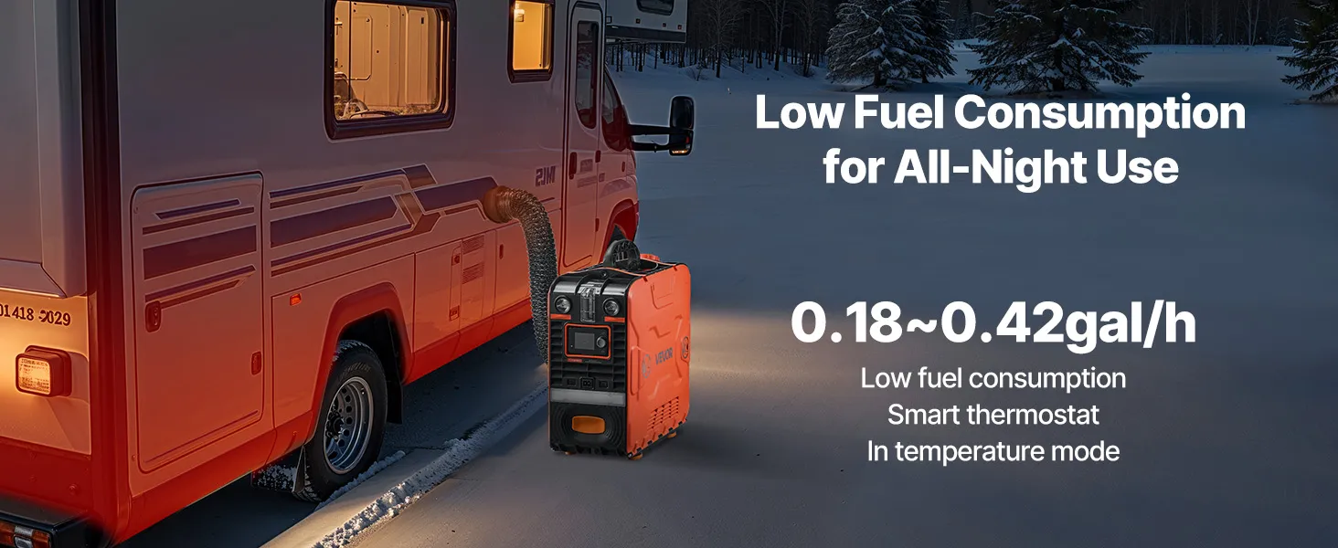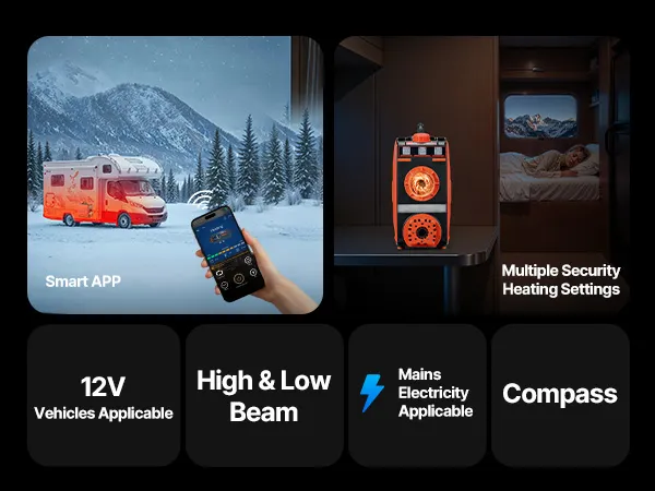 Equipped with high and low beam lights, this diesel air heater helps you navigate securely during nighttime camping, fishing, or outdoor use.