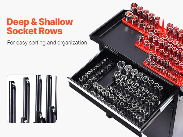 VEVOR high-rod socket organizer set holds up to 176 sockets and is compatible with various brands, making storage efficient and neat. The deep/shallow-rod design allows easy sorting by size. This socket holder ensures quick access and organized management, ideal for pros and home use.