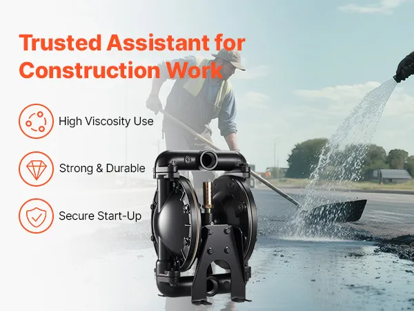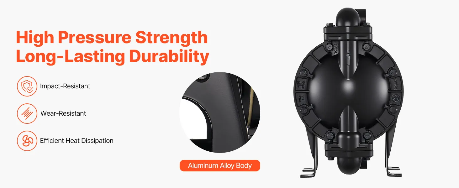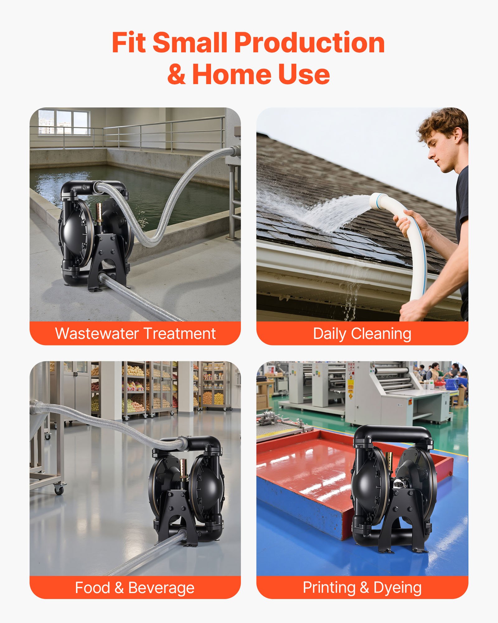 VEVOR Air Operated Double Diaphragm Pump, 132.49 LPM Max, Standard Inlet & Outlet Air Pneumatic Waste Oil Transfer Pump, Aluminum Alloy Body, Dual Diaphragms, for Diesel, Grease, Kerosene, Gasoline