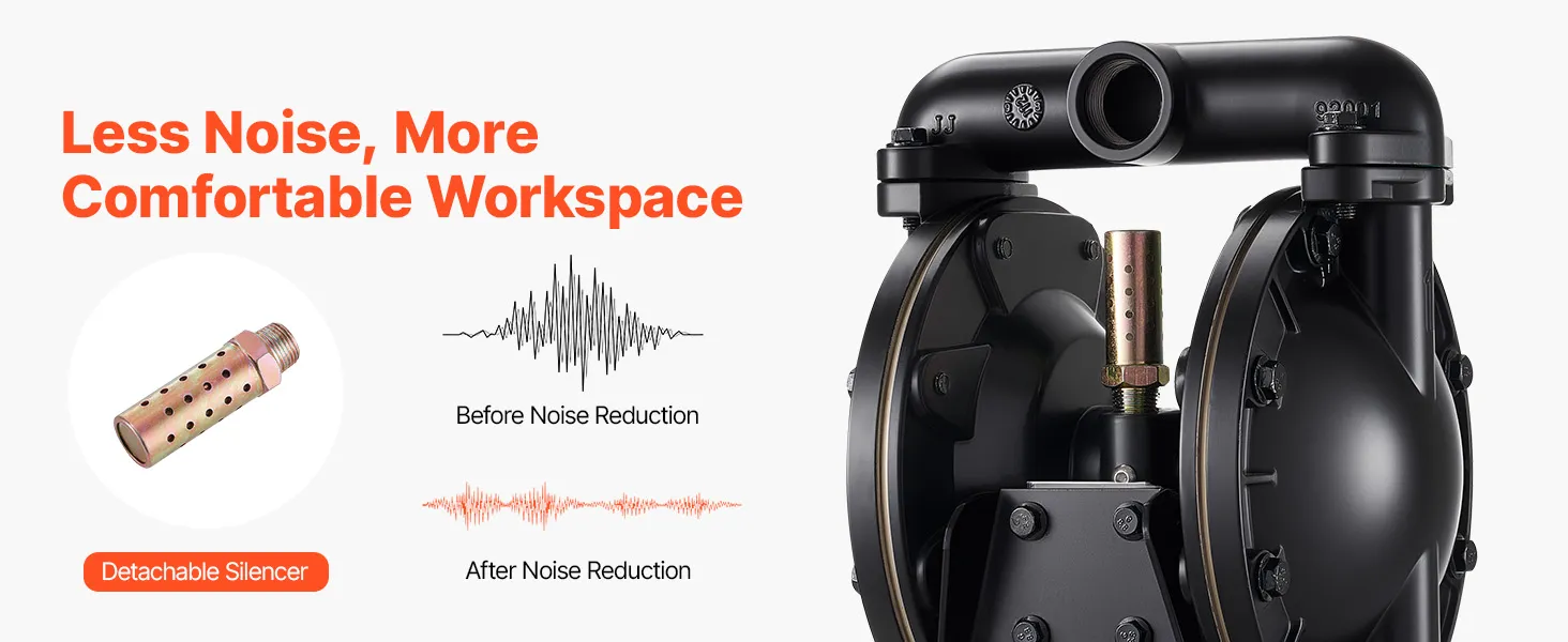 Our air operated diaphragm pump features a professional pneumatic design with industry-standard ports, integrating seamlessly with your piping system for secure and dependable performance.