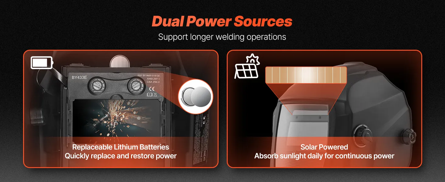 Supporting both solar charging and lithium battery power, our true color welding hood provides welders with long-lasting and reliable power support for uninterrupted operation.