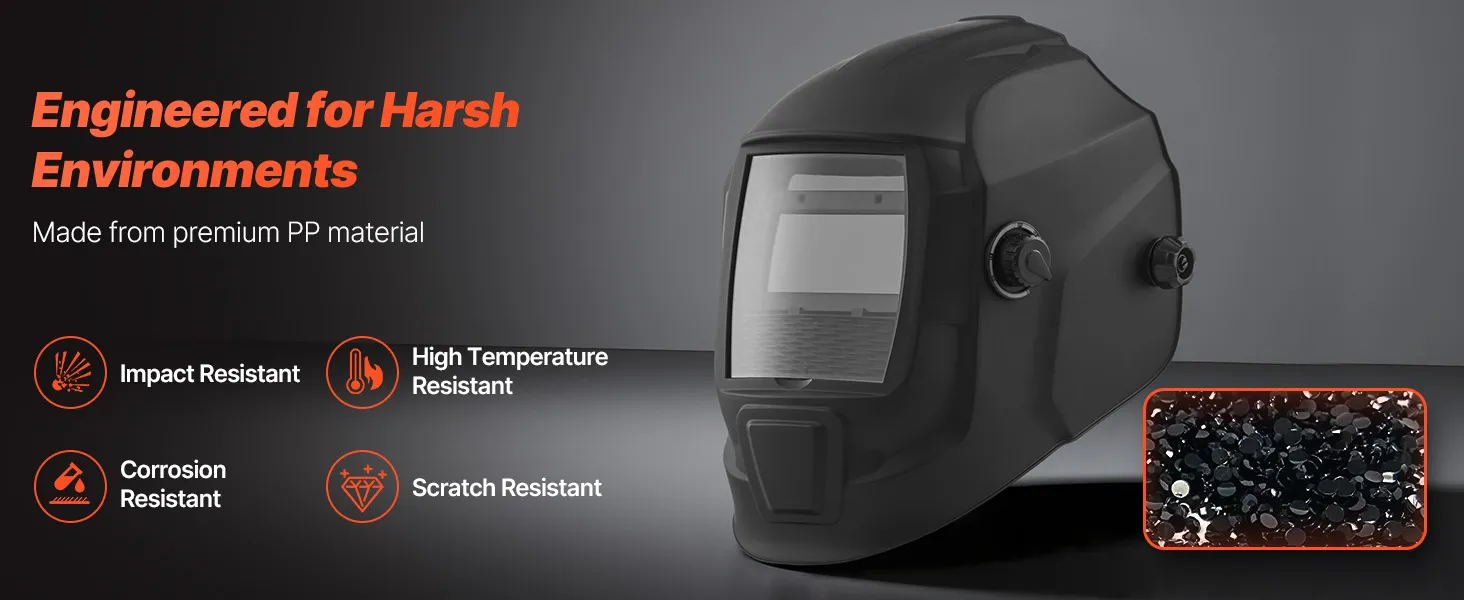 Made of high-quality material, this welding mask delivers exceptional durability with impact and high-temperature resistance. It effectively blocks flying sparks and high-temperature burns to provide reliable protection for your face and eyes.