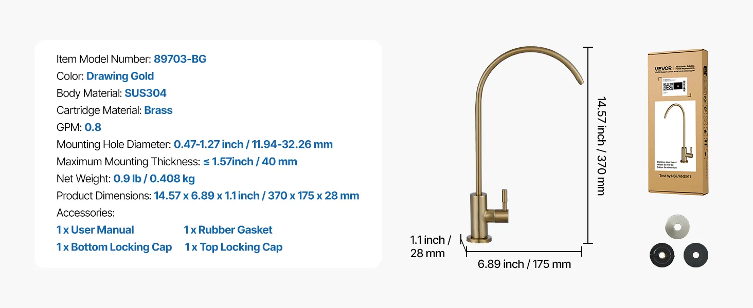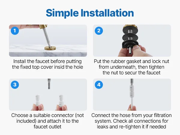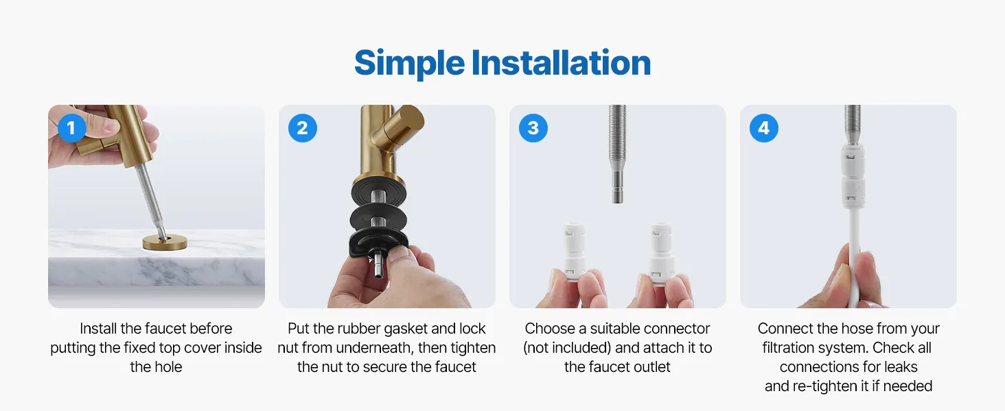 VEVOR drinking water faucet for kitchen sink installs in just four simple steps. All accessories are included so you can get started right away without special tools. Enjoy fresh, clean water with a faucet designed for quick setup and easy daily use.
