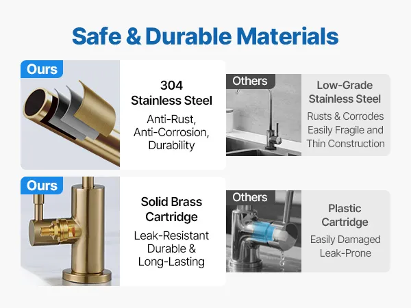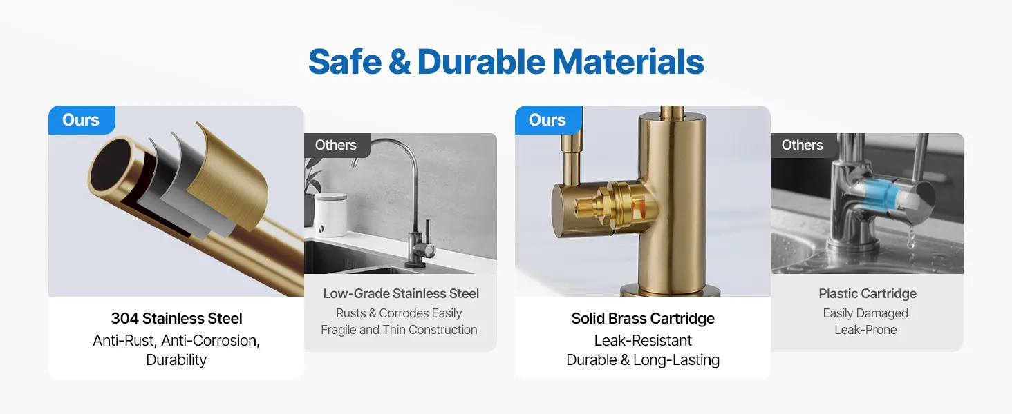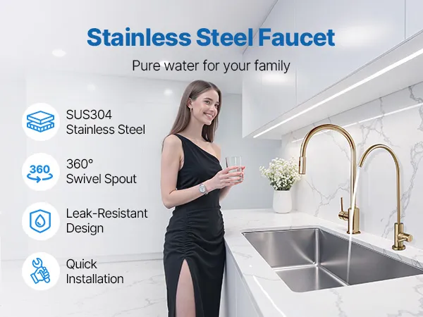 The RO water faucet combines 304 stainless steel and a brass valve for superior durability. Its corrosion- and rust-resistant materials keep performance steady and help prevent leaks. Enjoy a sturdy faucet that delivers clean water you trust every time.