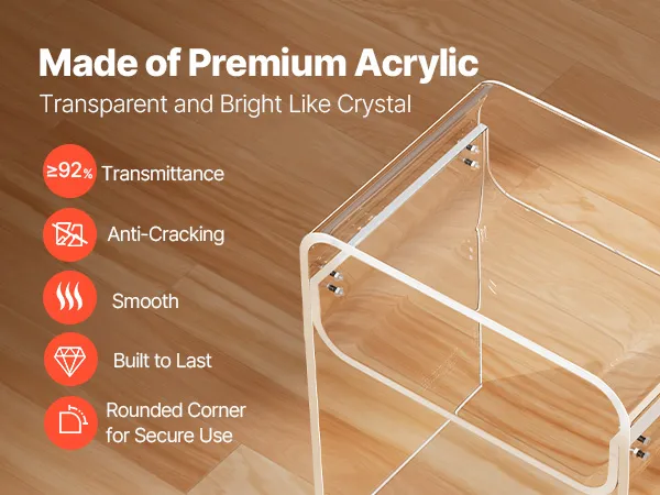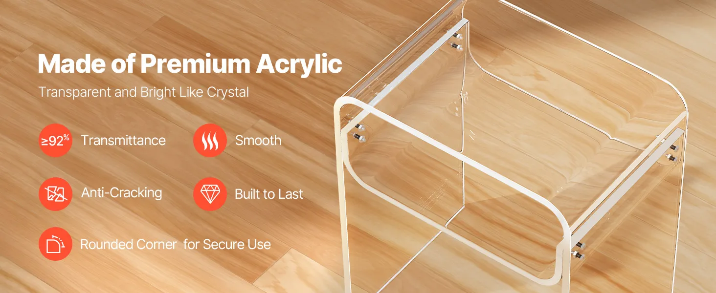 • Match Your Home Style: Our acrylic end table has a crystal-like shine with up to 92% light transmission. Its transparency creates openness, even in smaller spaces. It blends with various home styles, ideal for living rooms, bedrooms, entryways, or bathrooms
