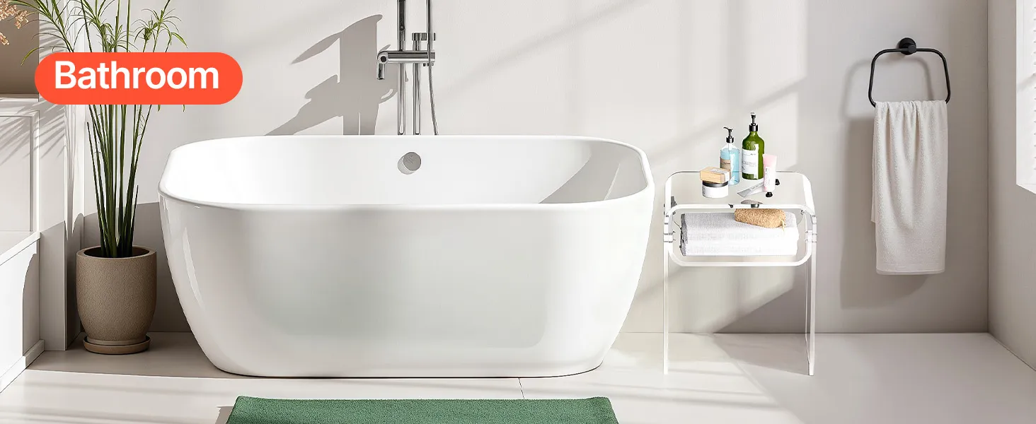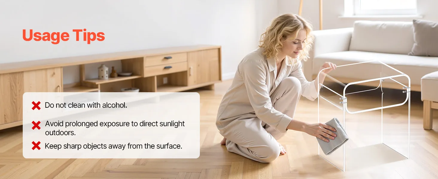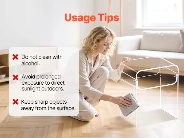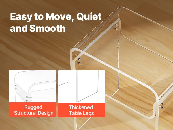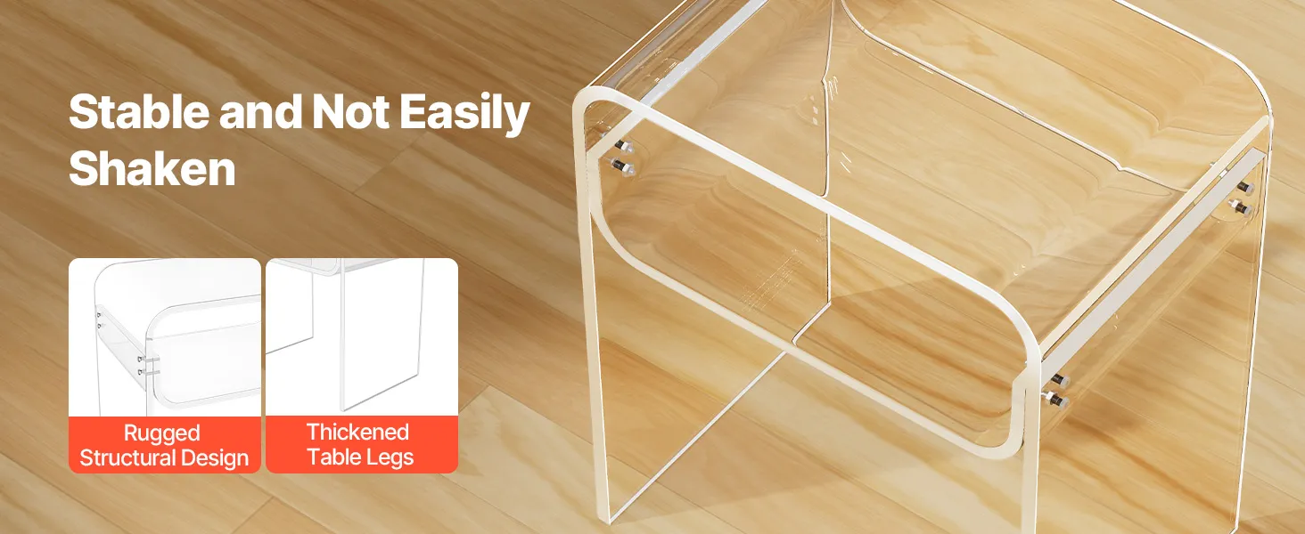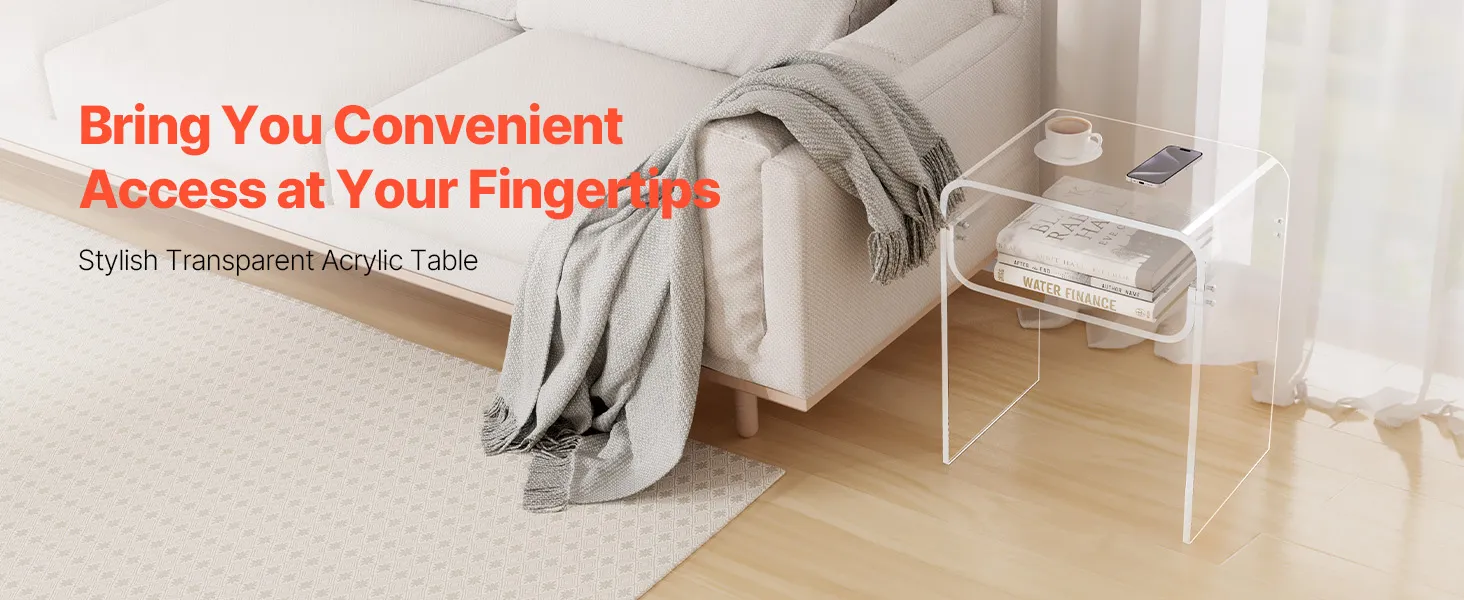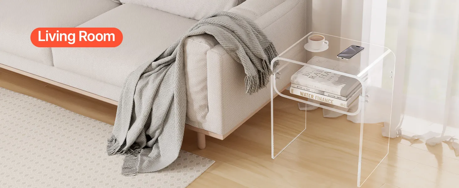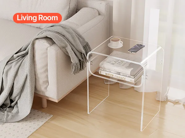 • Natural Acrylic Material: Made from high-quality acrylic, this acrylic table has a crystal-clear surface that stays bright over time. More impact-resistant than tempered glass, it’s a secure and sturdy option, especially for homes with kids and pets