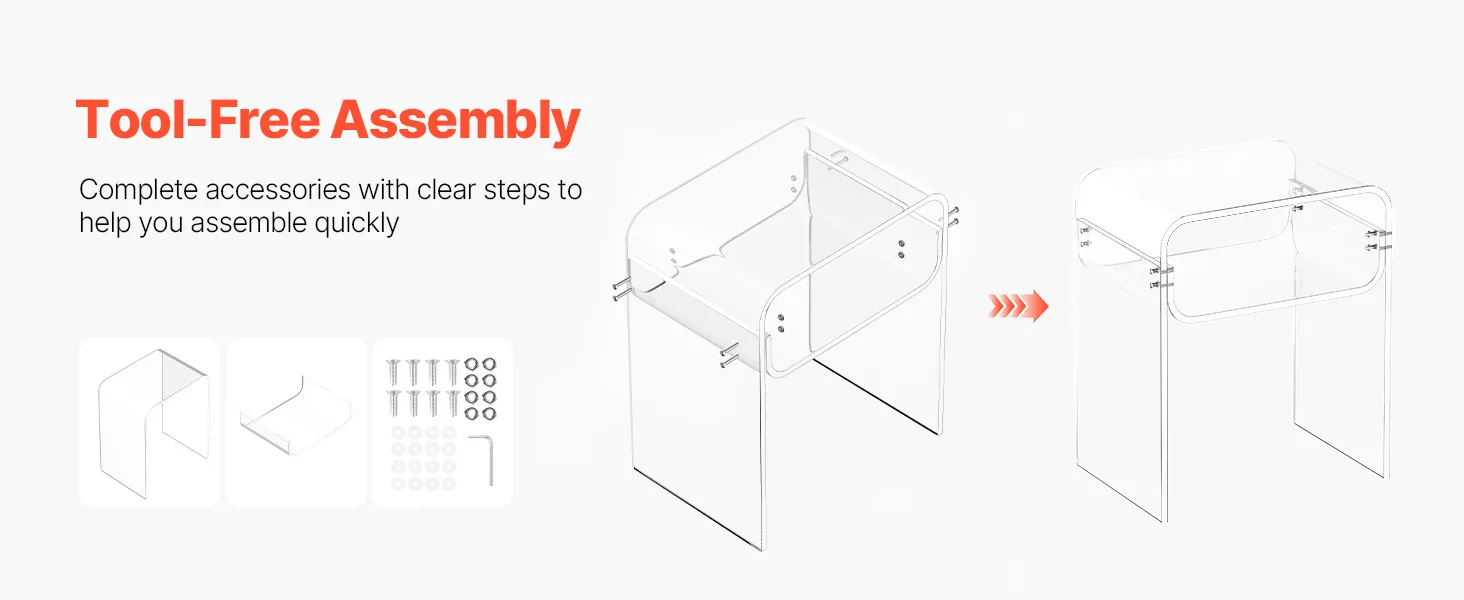 • Easy Assembly & Clean: The accessory and instructions make assembly quick. For maintenance, wipe with water or acrylic cleaner. (Note: Remove the protective film after assembly. Do not use alcohol to clean and avoid long-term outdoor exposure to sunlight.)