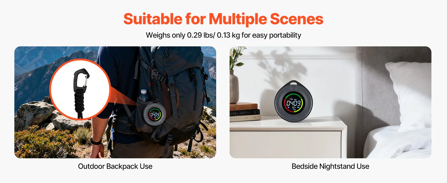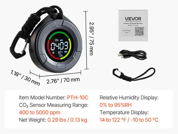 This CO2 meter weighs only 0.29 lbs (0.13 kg) and features a compact design that fits easily in your pocket or bag. Ideal for classrooms, offices, and greenhouses, it provides reliable CO₂ monitoring while being highly portable and convenient for daily use.